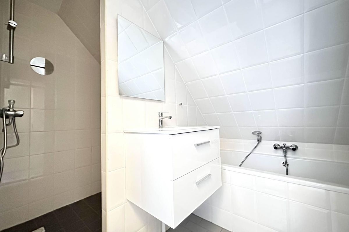 * Geheel betegelde badkamer van ca. 3.10 x 2.09 voorzien van ligbad, separate douche, wastafel met meubel, designradiator en aansluiting voor de wasmachine/droger.