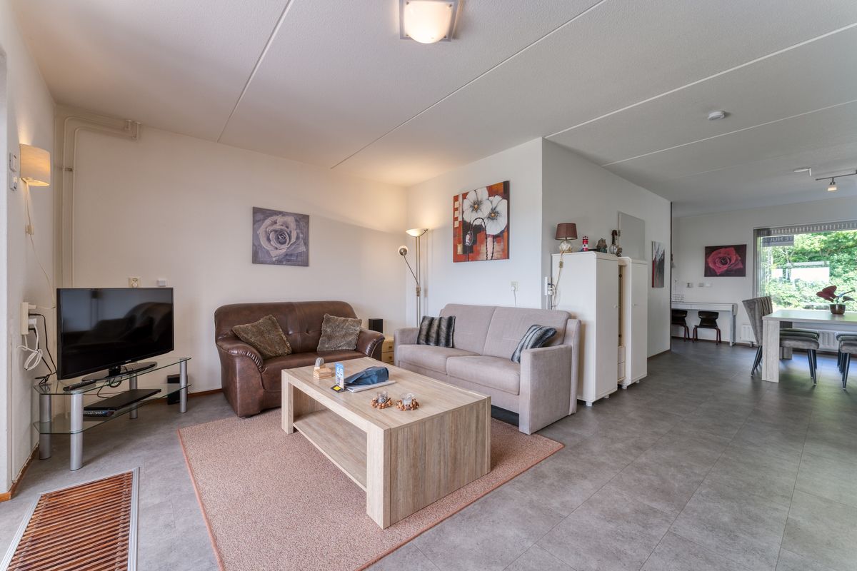 Via de hal met toilet en trapopgang betreedt u de woonkamer: een lichte, uitnodigende ruimte waar grote ramen en een schuifpui zorgen voor een prachtig uitzicht op de tuin en veel daglicht. Er is een comfortabele zithoek waar u heerlijk kunt ontspannen met een boek of filmavond, en een ruime eethoek die perfect is voor gezellige diners of spelletjesavonden.