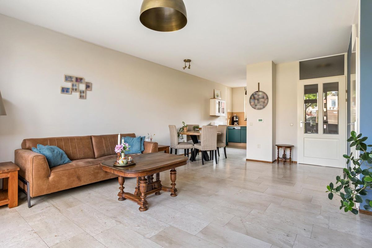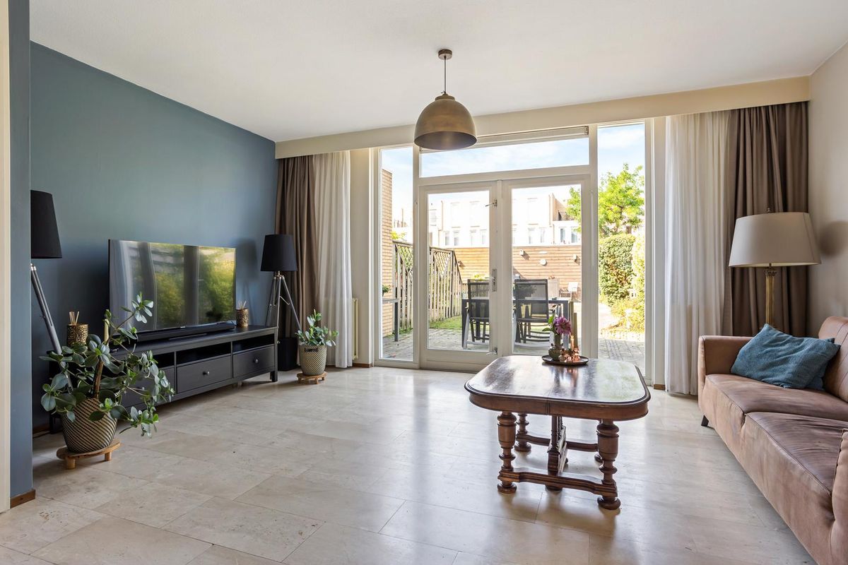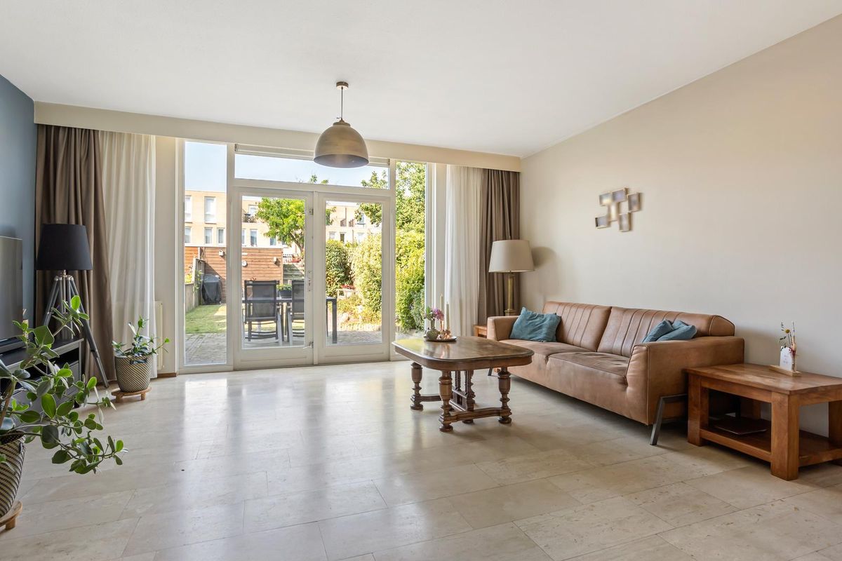 De tuingerichte woonkamer valt direct op door de enorme hoeveelheid licht: de ramen lopen van vloer tot plafond en de openslaande deuren bereikt u de achtertuin van ruim 17 meter diep. Deze is gunstig gelegen op het zuidwesten en is een heerlijke plek om de hele dag van de zon te genieten. Dankzij de ruime berging en de achterom is de tuin bovendien praktisch in gebruik.
