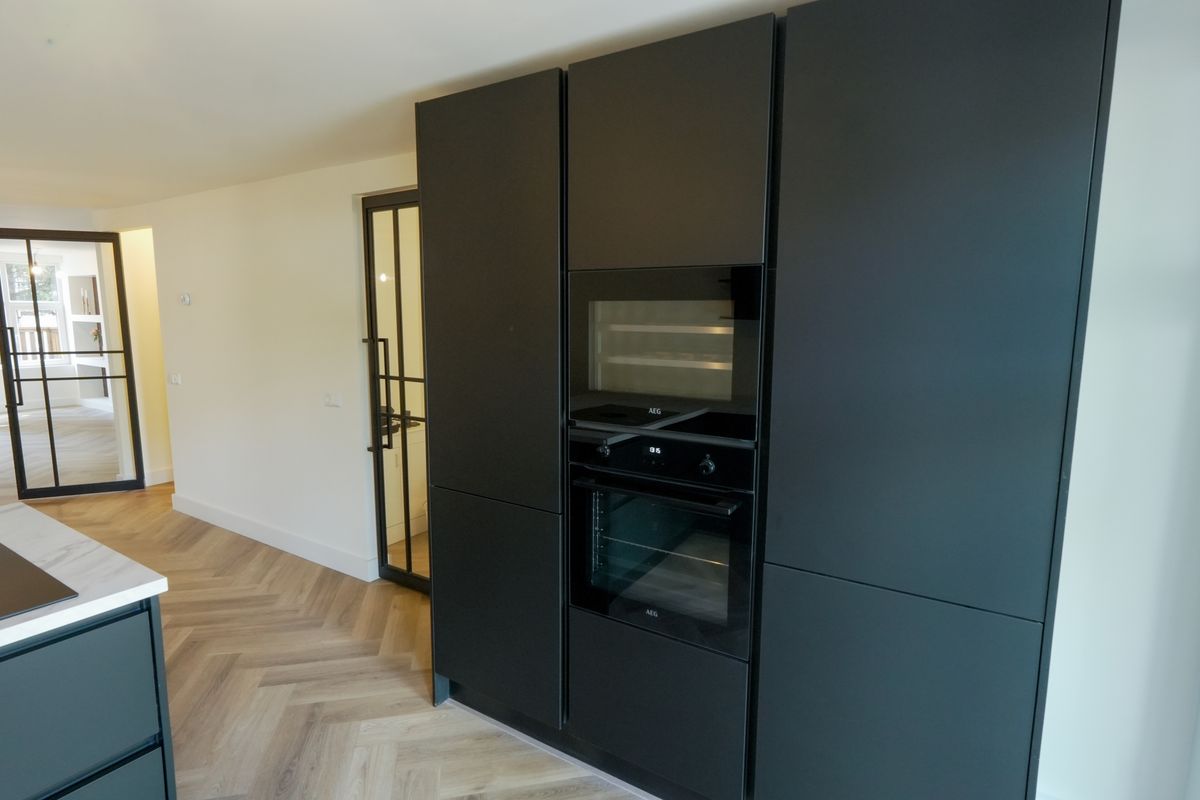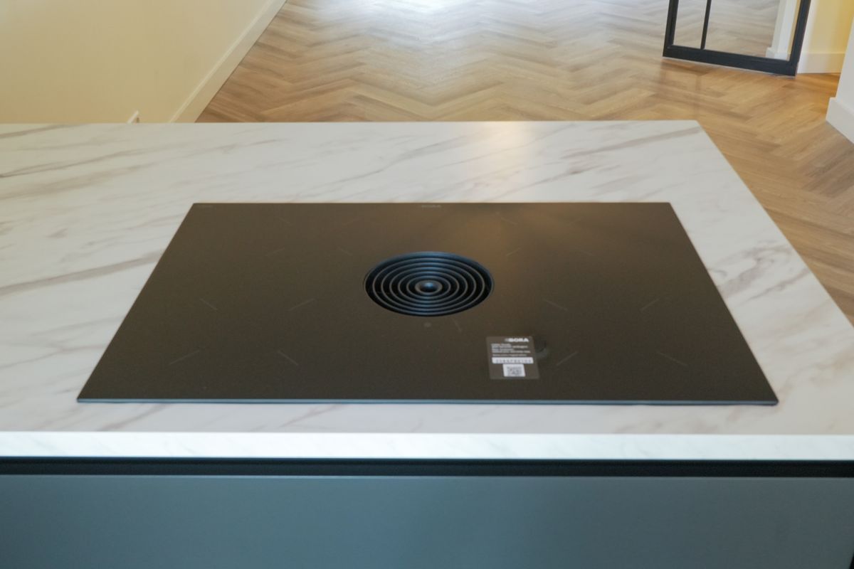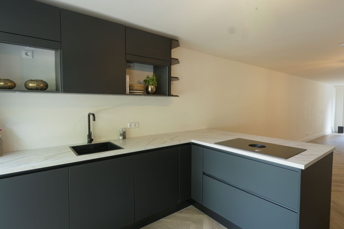 Je komt binnen in de lichte en ruime woonkamer. Aan de voorzijde vind je de fraaie open keuken in hoekopstelling die van alle luxe is voorzien. Je hebt hier uitstekende inbouwapparatuur zoals een koelkast, vaatwasser en combimagnetron en zelfs een inductiekookplaat met een Bora afzuigsysteem.