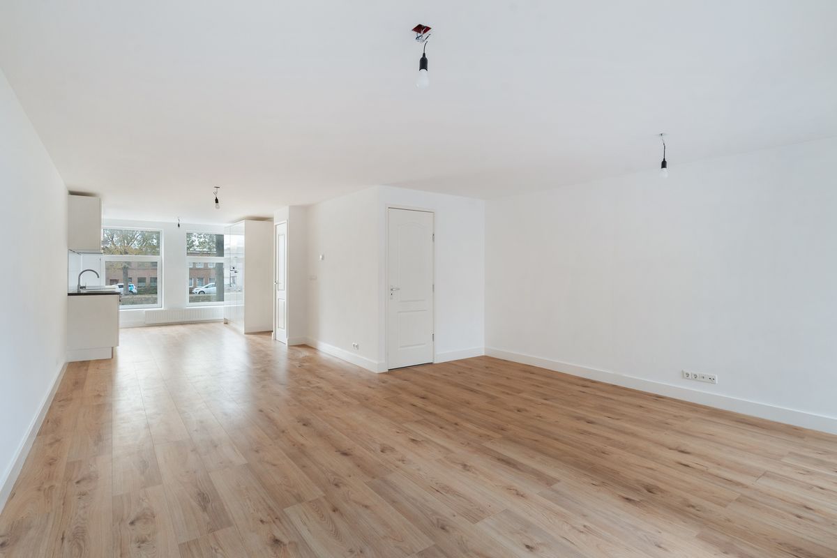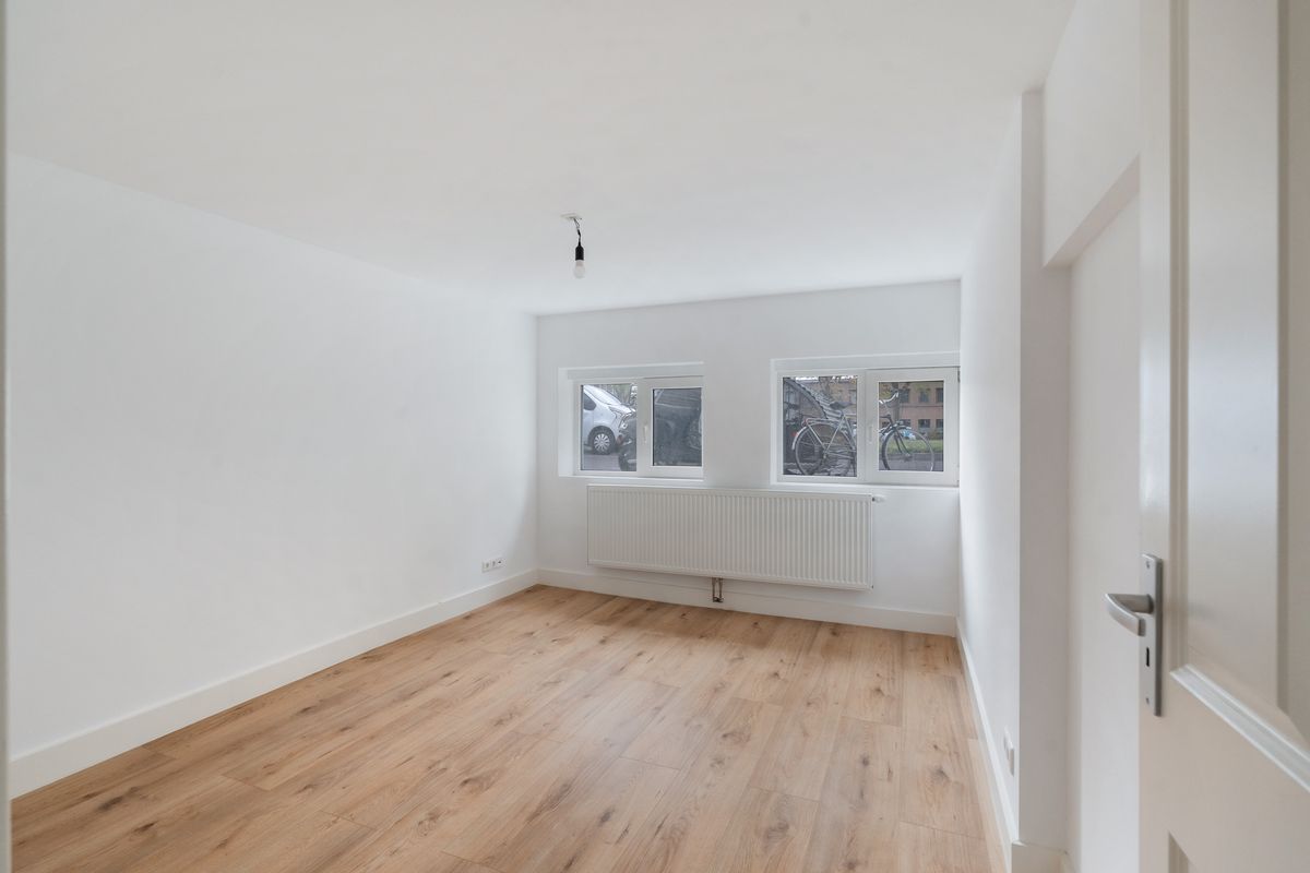 De woonkamer strekt zich uit over de volle diepte van de woning en ontvangt veel daglicht. Via de deur bereikt u de fraai aangelegde achtertuin, een heerlijke plek om buiten te ontspannen. De keuken aan de voorzijde beschikt over moderne inbouwapparatuur en biedt ruimte voor een eettafel.
