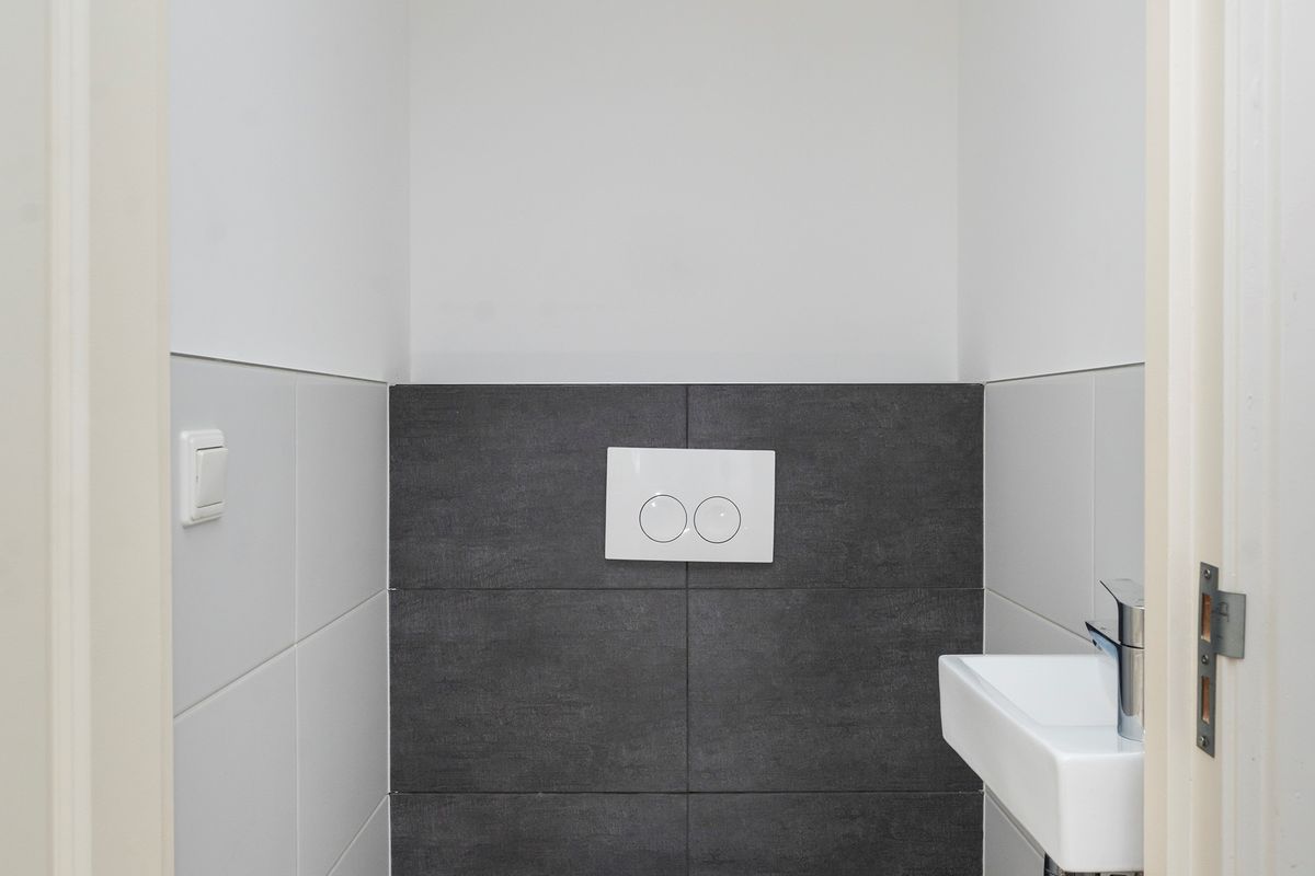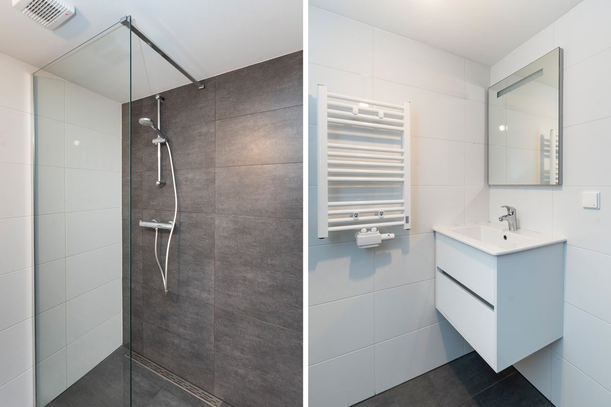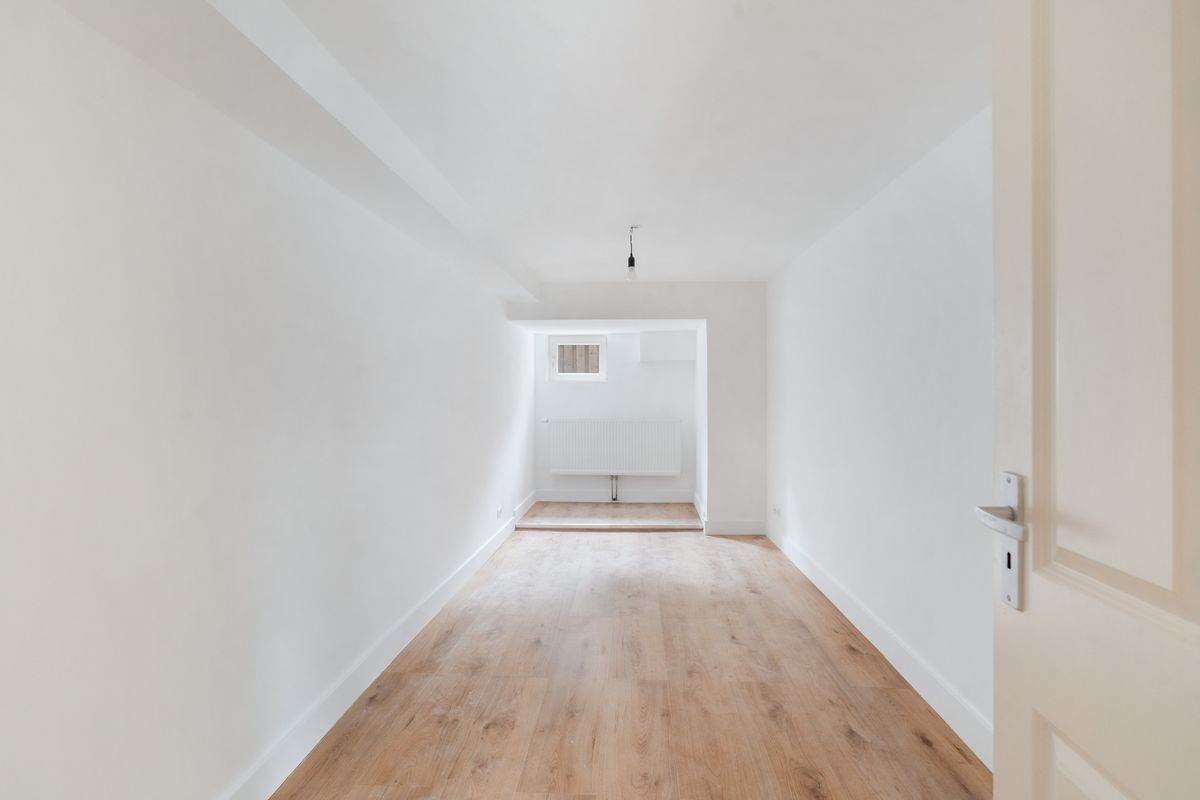 In het souterrain liggen de slaapkamers, drie in totaal, elk van ruim formaat en voorzien van een prettige lichtinval. De badkamer heeft een inloopdouche en een stijlvol wastafelmeubel. Op de begane grond bevindt zich een apart toilet, praktisch voor dagelijks gebruik.