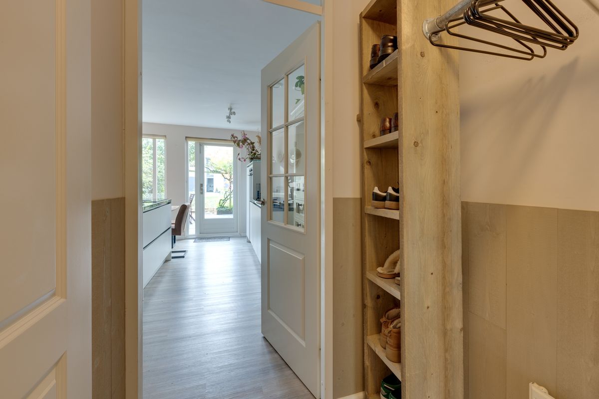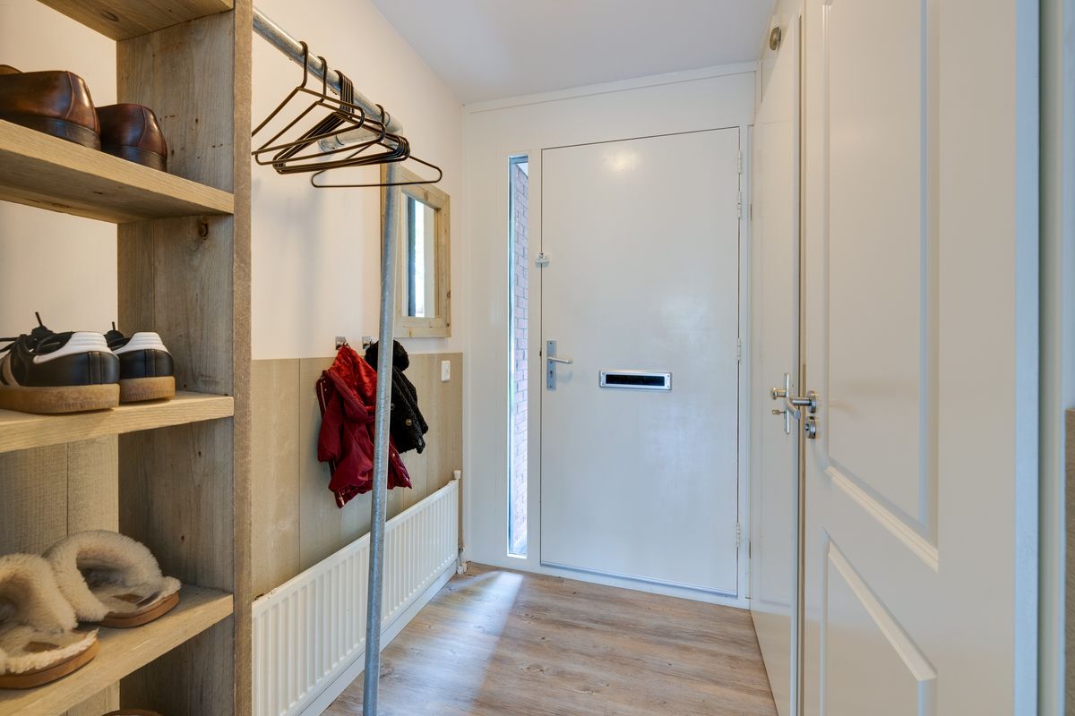 Via de overdekte entree aan de voorzijde bereik je de woning en de inpandige berging, waarvan de toegang zich aan de linkerzijde bevindt. Een ideale ruimte die je kunt gebruiken als bijkeuken of opslag, met de mogelijkheid om hier de wasmachine en droger te plaatsen.