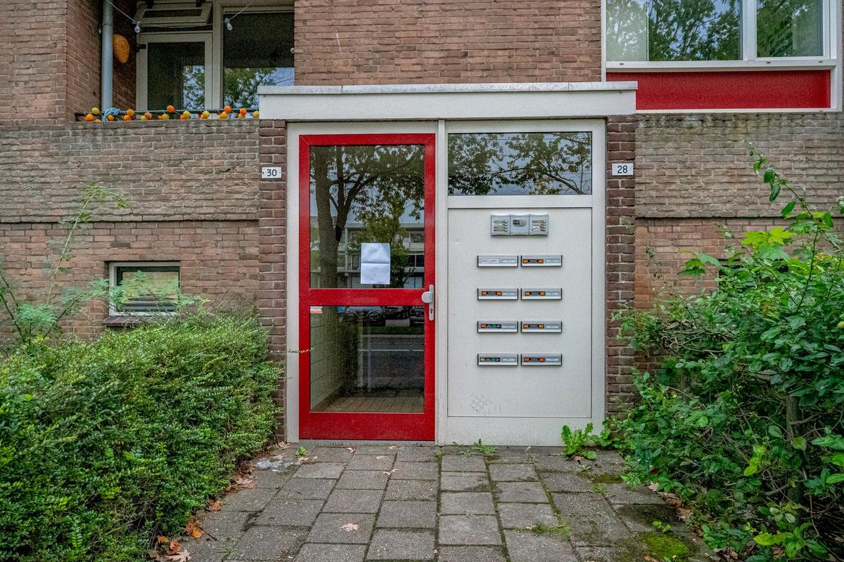 Gezamenlijke entree met brievenbussen en trappenhuis.