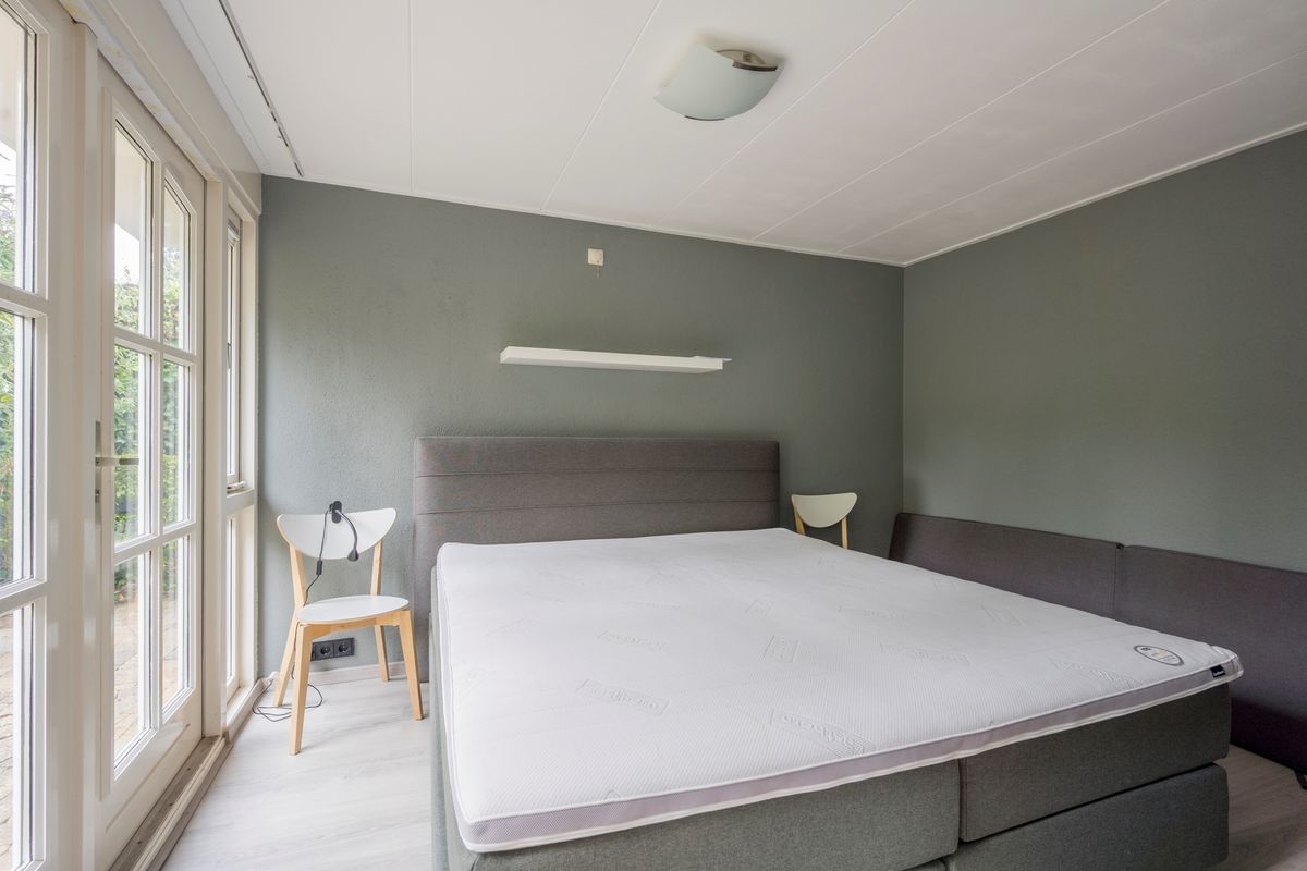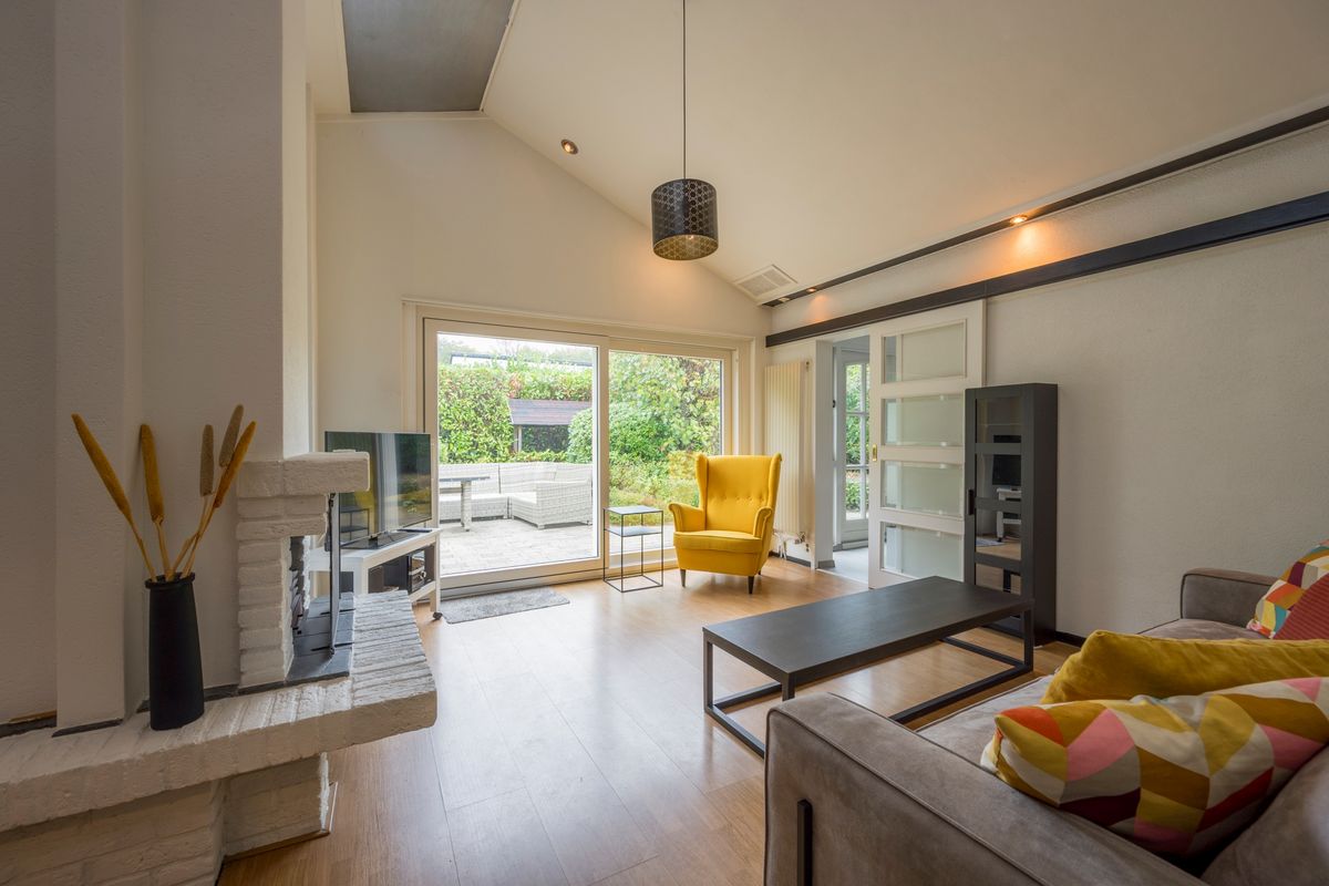 De entree geeft u toegang tot de royale woonkamer met de open haard. Deze is gesitueerd in het midden van de woonkamer wat het een sfeervol geheel maakt. De open keuken is voorzien van een eenvoudig keukenblok met inbouwapparatuur. De schuifpui zorgt voor veel lichtinval en u loopt zo naar uw terras in de heerlijke achtertuin en het buiten wordt echt naar binnen gehaald! Aangrenzend de woonkamer de slaapkamer met openslaande deuren naar het terras. Er is nog een tweede slaapkamer met een praktische vaste kast voorzien van schuifdeuren. De badkamer heeft een douchecabine, wastafel, toilet en een aansluiting voor de wasmachine.