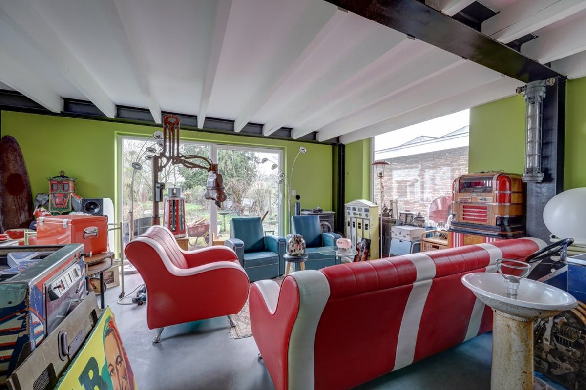Behind the house is a high-quality detached outbuilding of approximately 133 m². This building is entirely on one level and offers a wealth of additional space. Imagine a spacious workshop, a private gym, an impressive man cave, or simply luxurious storage space. The building features a generous hall, a bright L-shaped room with a fireplace and large doors leading to the garden, several additional rooms, and a spacious attic for storage.