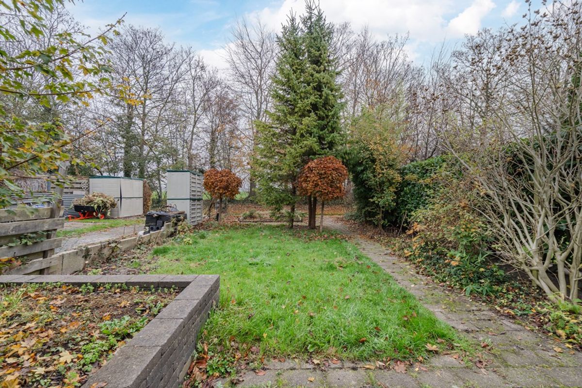 De achtertuin heeft een achterom en is circa 24 meter diep, is gedeeltelijk voorzien van sierbestrating, een verhoogde border, sierbeplanting zoals bomen en struikjes en een kleine moestuin aan het achterste gedeelte. Verder staat er nog een afsluitbare stenen berging, zijn er elektra en verlichtingspunten aangebracht en is er een buitenkraan aanwezig.