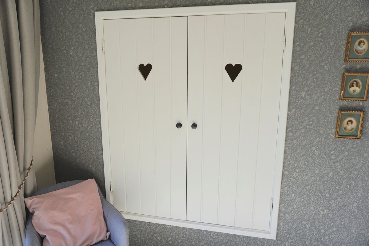 Vast trap naar verdieping met overloop, toilet met wastafel, 2 slaapkamers waarvan één met grote vaste inbouwkast. Bergruimte achter de knieschotten.