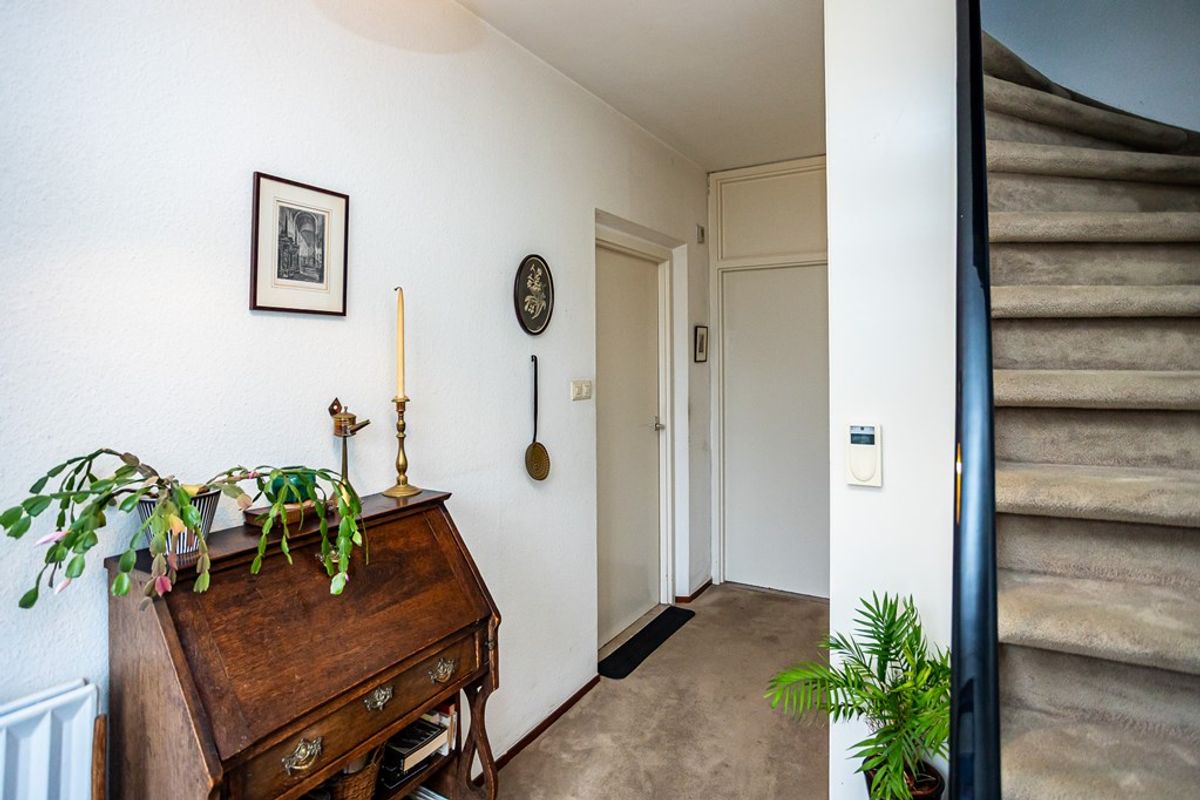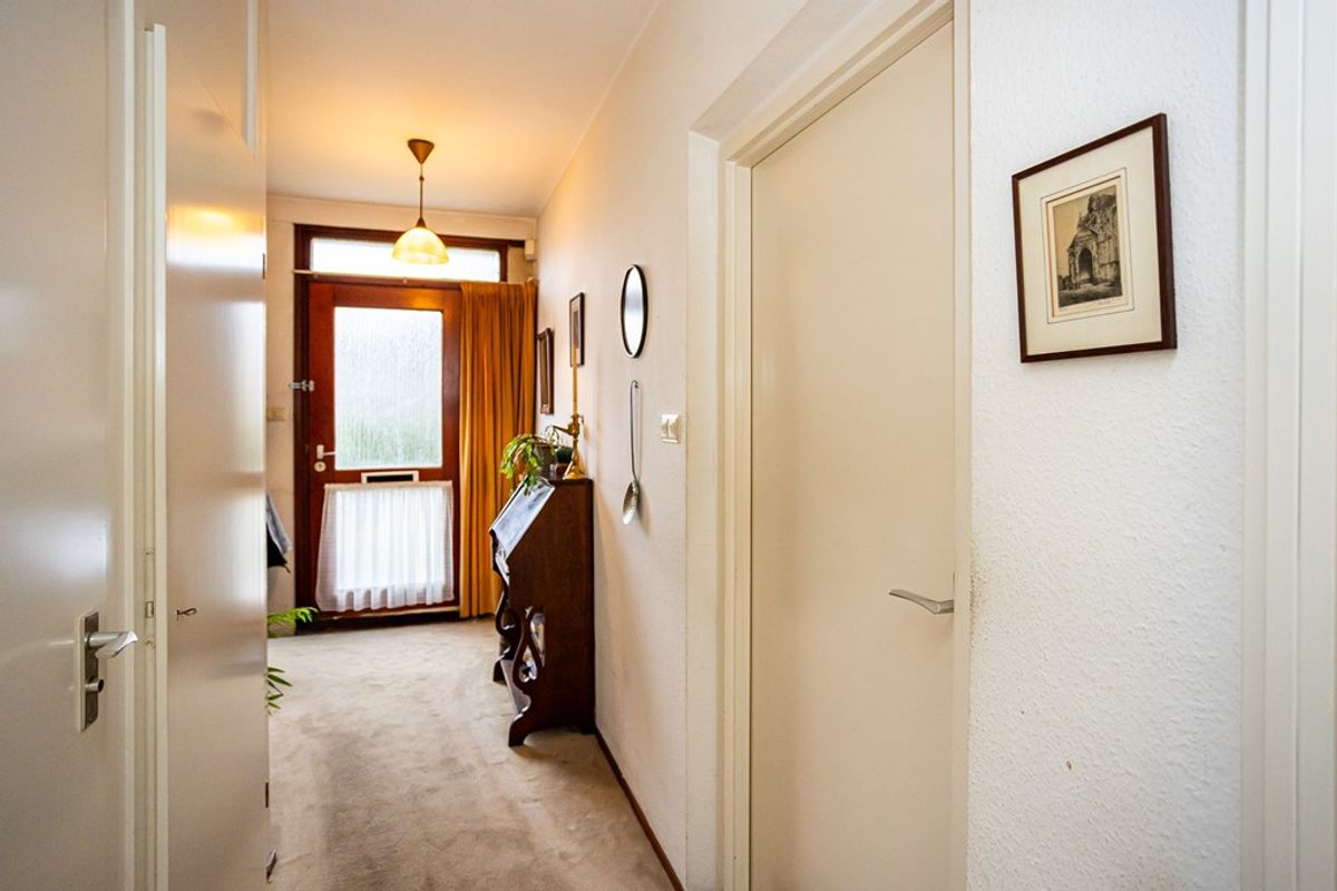 hal/entree met bergkast, toilet met fontein, ruime eet-/woonkamer met erker en toegang tot terras en achtertuin, dichte keuken met keukenblok in rechte opstelling en