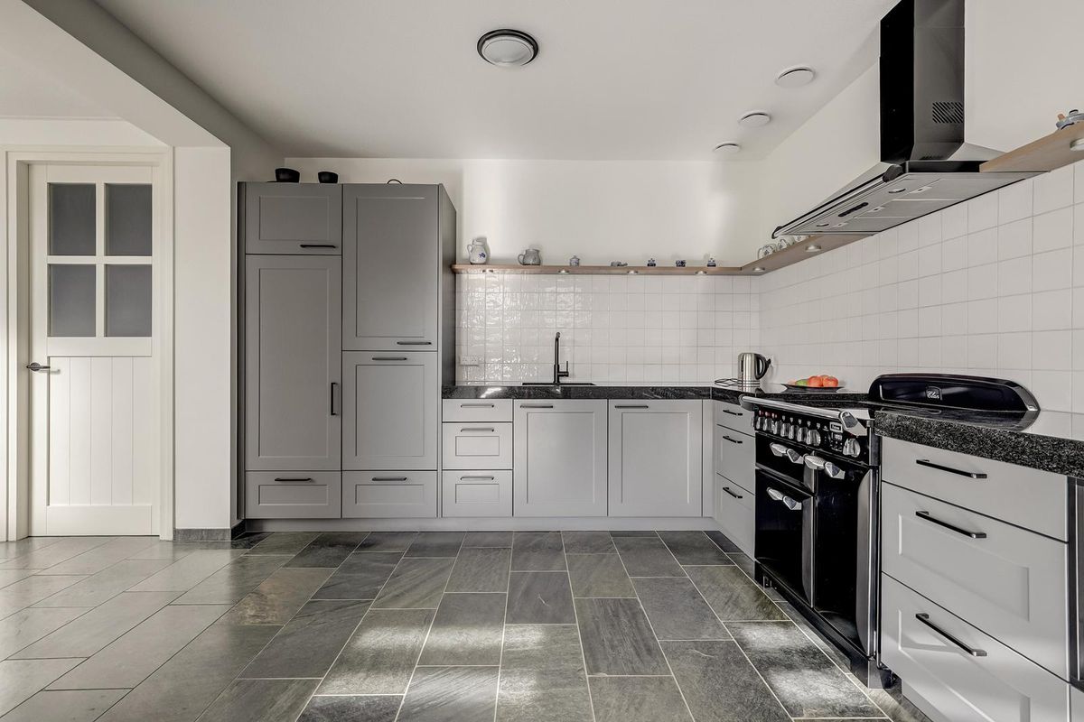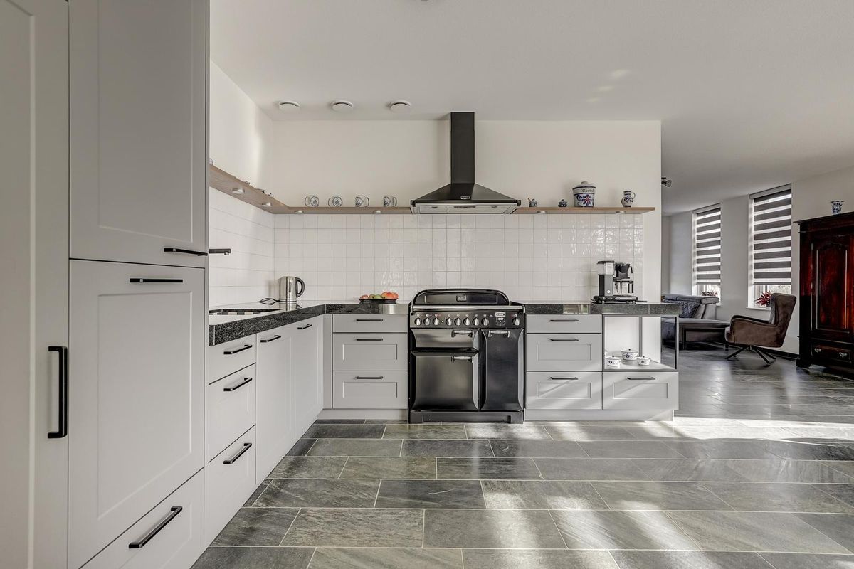 • Moderne keuken met breed fornuis, granieten werkblad en veel kastruimte