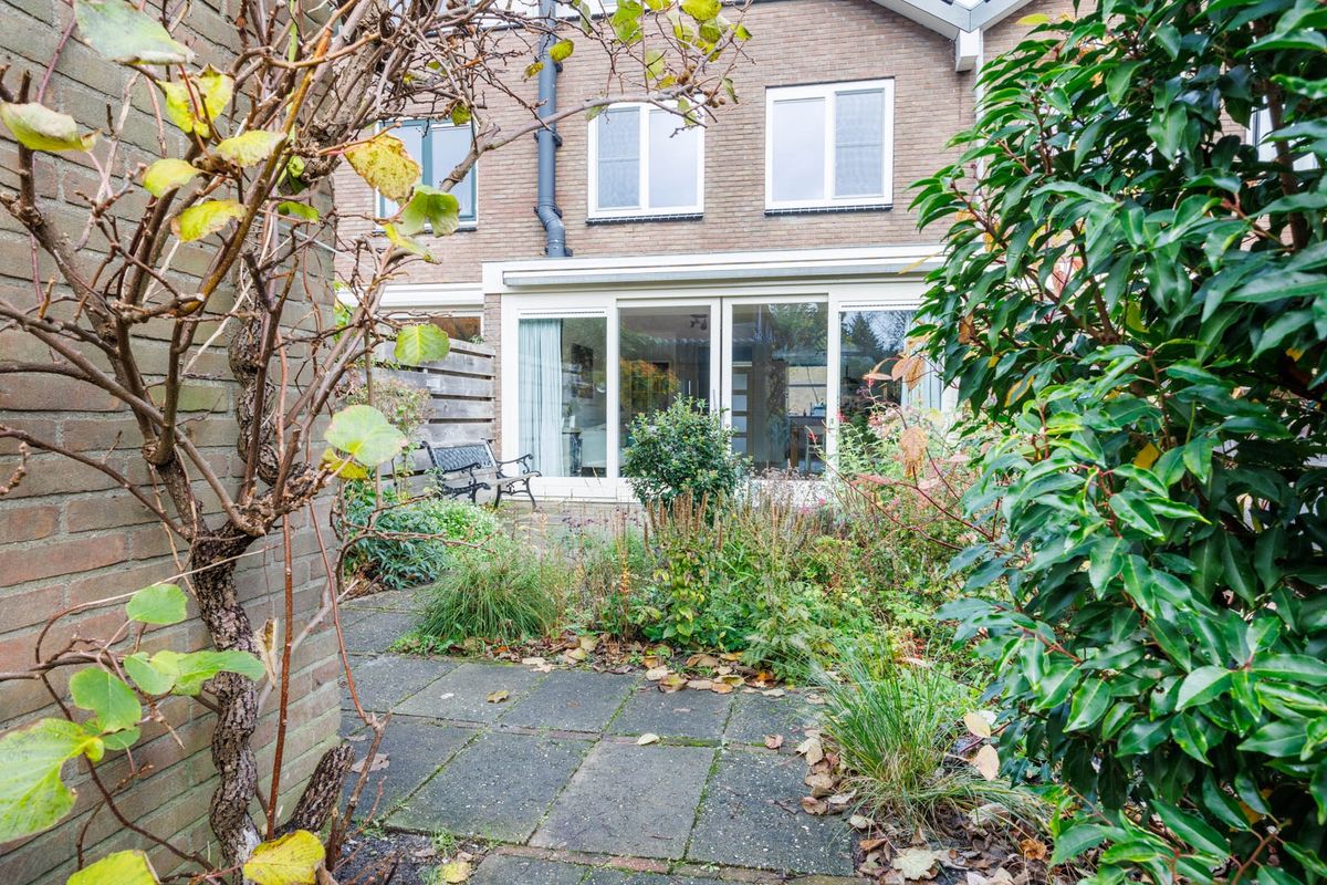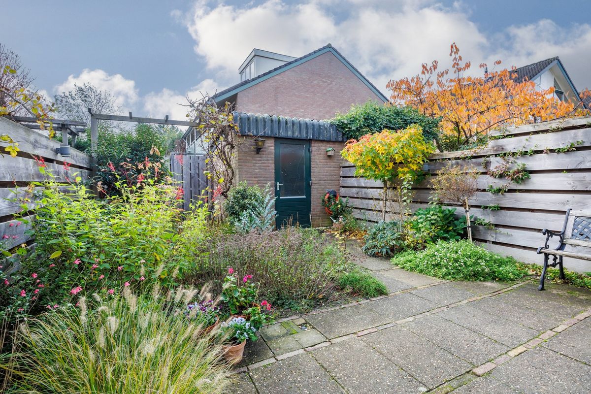 De sfeervolle, op het zuiden gelegen tuin biedt een groot terras, fraaie beplanting en een praktische achterom. Daarnaast heeft de tuin geen tot weinig inkijk van achterburen. U zit echt vrij. De berging is voorzien van elektra en biedt ruimte voor meerdere fietsen. Over de hele breedte van de woonkamer is een elektrisch zonnescherm aanwezig.