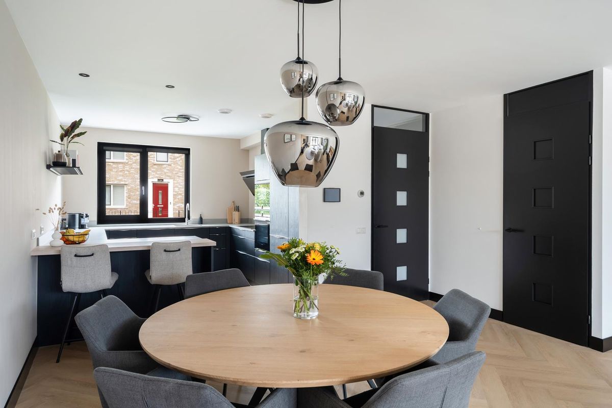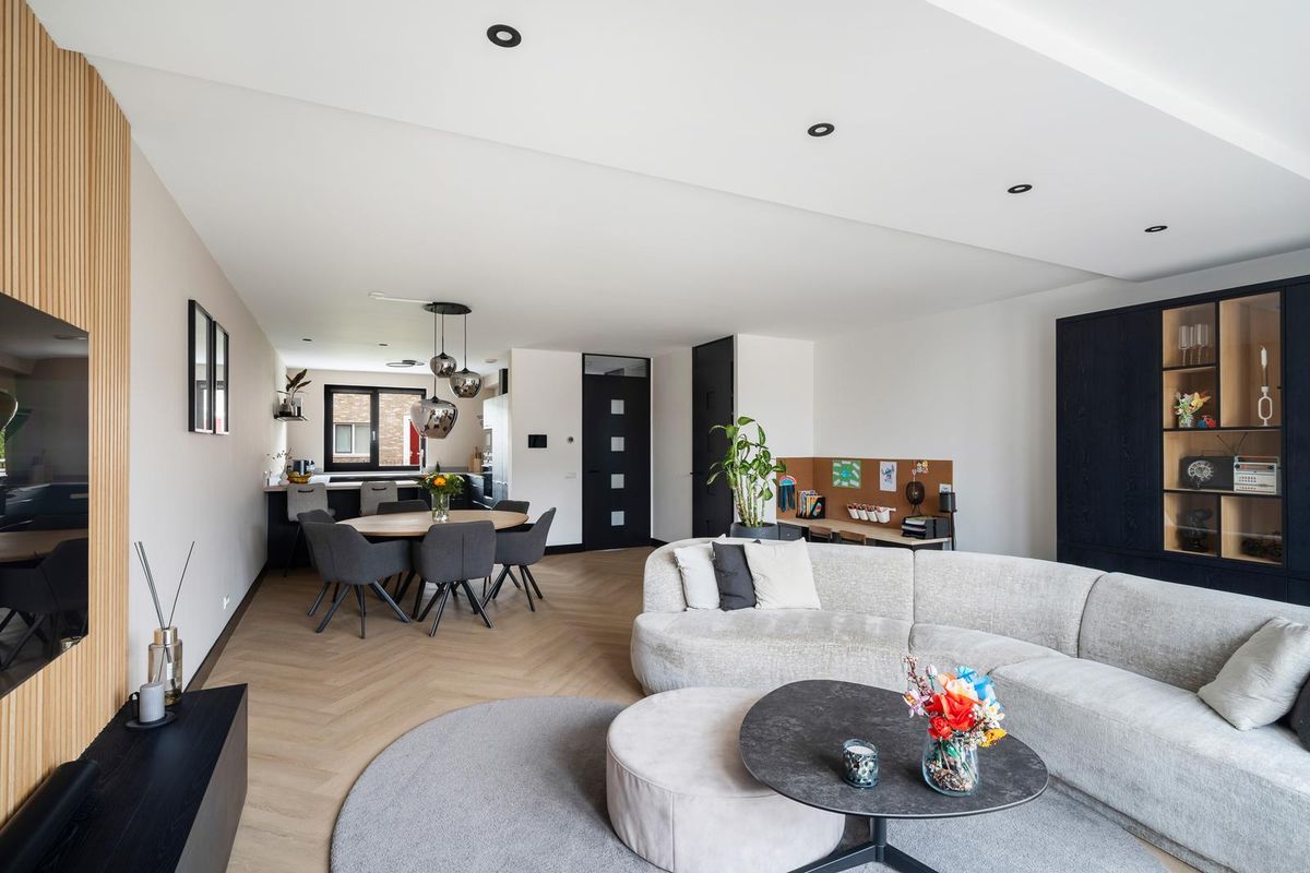 De woning ligt aan een rustig en kindvriendelijk voetpad. Je komt binnen in de hal met meterkast (met 13 groepen, aardlekschakelaar en 3 fase aansluiting) en modern toilet (met hangend toilet en fonteintje). De ruime woonkamer is tuingericht en aan de achterzijde uitgebouwd. De inrichting straalt luxe en comfort uit, met glad gestucte wanden, een visgraat PVC-vloer en modern houten wandpaneel met cinewall. De half open keuken aan de voorzijde is in 2023 grotendeels vernieuwd en voorzien van een composieten aanrechtblad en nieuwe fronten. Ook de wasbak, kranen en inductiekookplaat zijn toen vernieuwd. Verder zijn er een koelkast, vriezer, afzuigkap, oven en magnetron ingebouwd. De keuken heeft een bar, waar het gezellig aanschuiven is als er gekookt wordt.