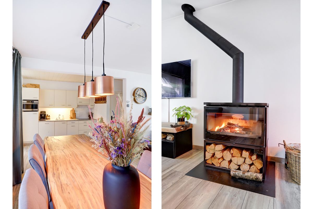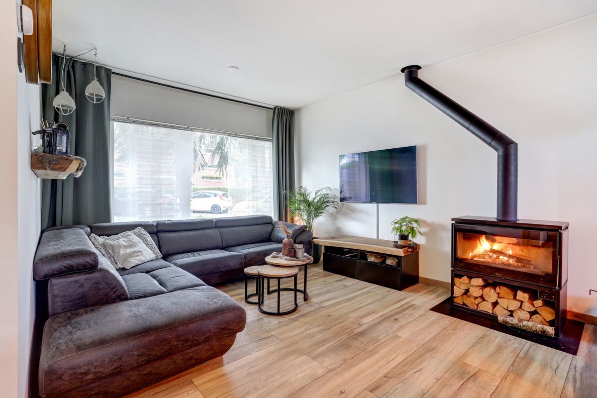 De huidige bewoners hebben een echte blikvanger toegevoegd: de houtkachel. Deze sfeervolle toevoeging zorgt niet alleen voor een stijlvol accent in de ruimte, maar ook voor extra warmte en comfort tijdens de koudere dagen.