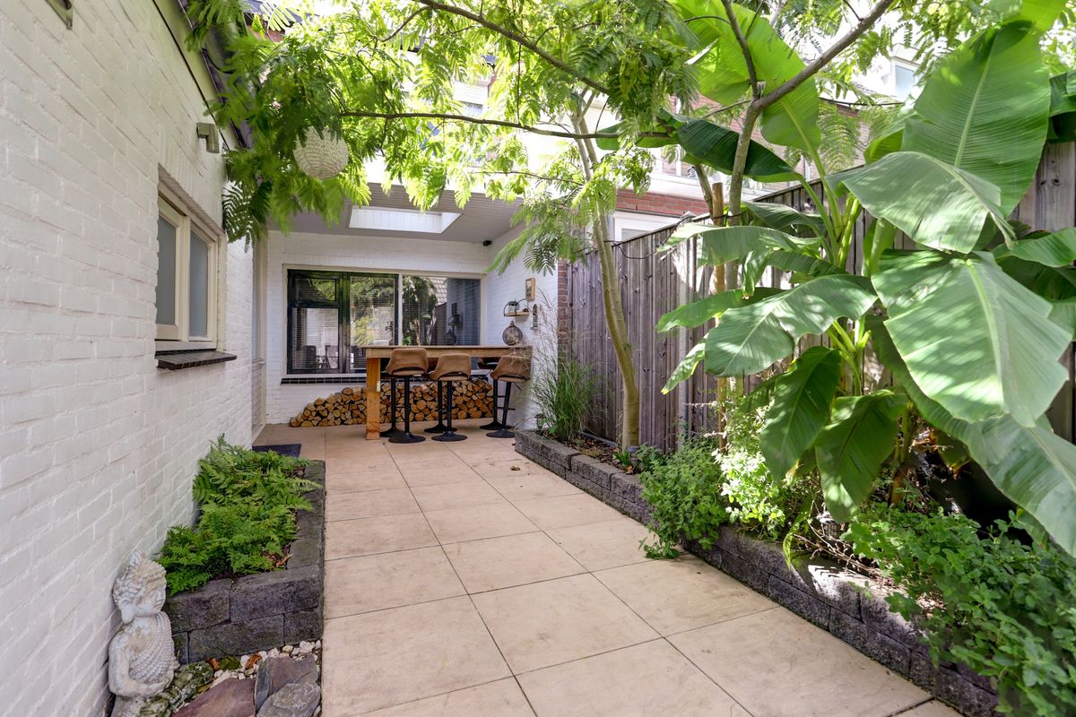 Wat dit huis écht bijzonder maakt, is de diepe, op het Oosten gelegen botanische tuin. Sfeervol aangelegd met tropische uitstraling: prachtige tegels, weelderig groen en een strakke vijverpartij (met pomp) zorgen voor een oase van rust.