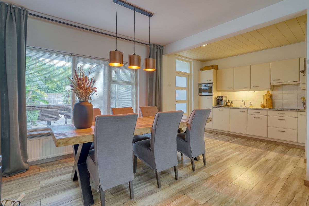 Aan de voorzijde is volop ruimte voor een comfortabele zithoek, terwijl aan de tuinzijde met gemak een eettafel voor zes personen geplaatst kan worden.
