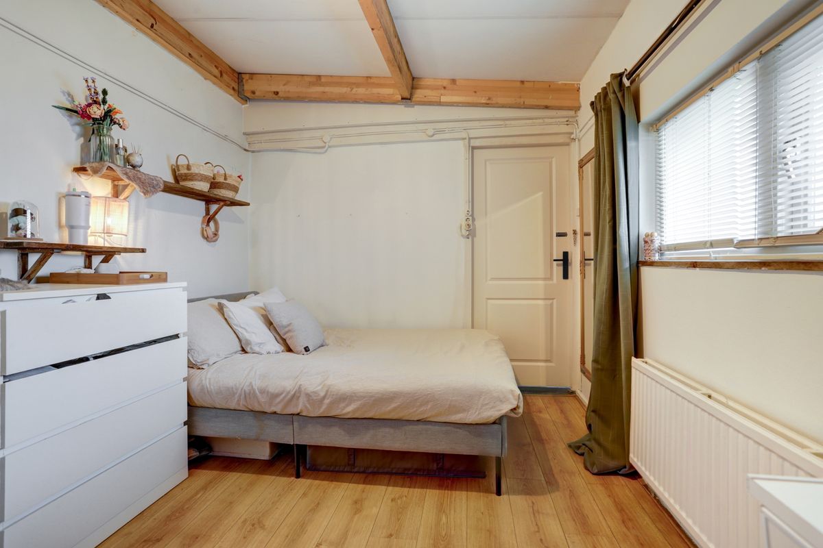 De voormalige inpandige berging achter de bijkeuken is omgebouwd tot een kinderkamer van prima formaat, met volop natuurlijk daglicht. De ruimte is afgewerkt met een laminaatvloer en via een afsluitbare deur is de elektrische cv-installatie, elektrische warmwaterboiler en de omvormer van de zonnepanelen eenvoudig bereikbaar.