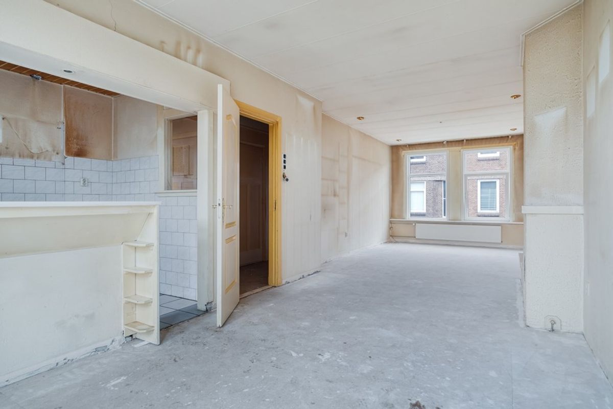 KLUSSERS OPGELET! 3-KAMERAPPARTEMENT MET OPEN KEUKEN, KLAAR OM GEHEEL NAAR EIGEN WENS TE RENOVEREN, IN DE GELIEFDE HEESTERBUURT.
