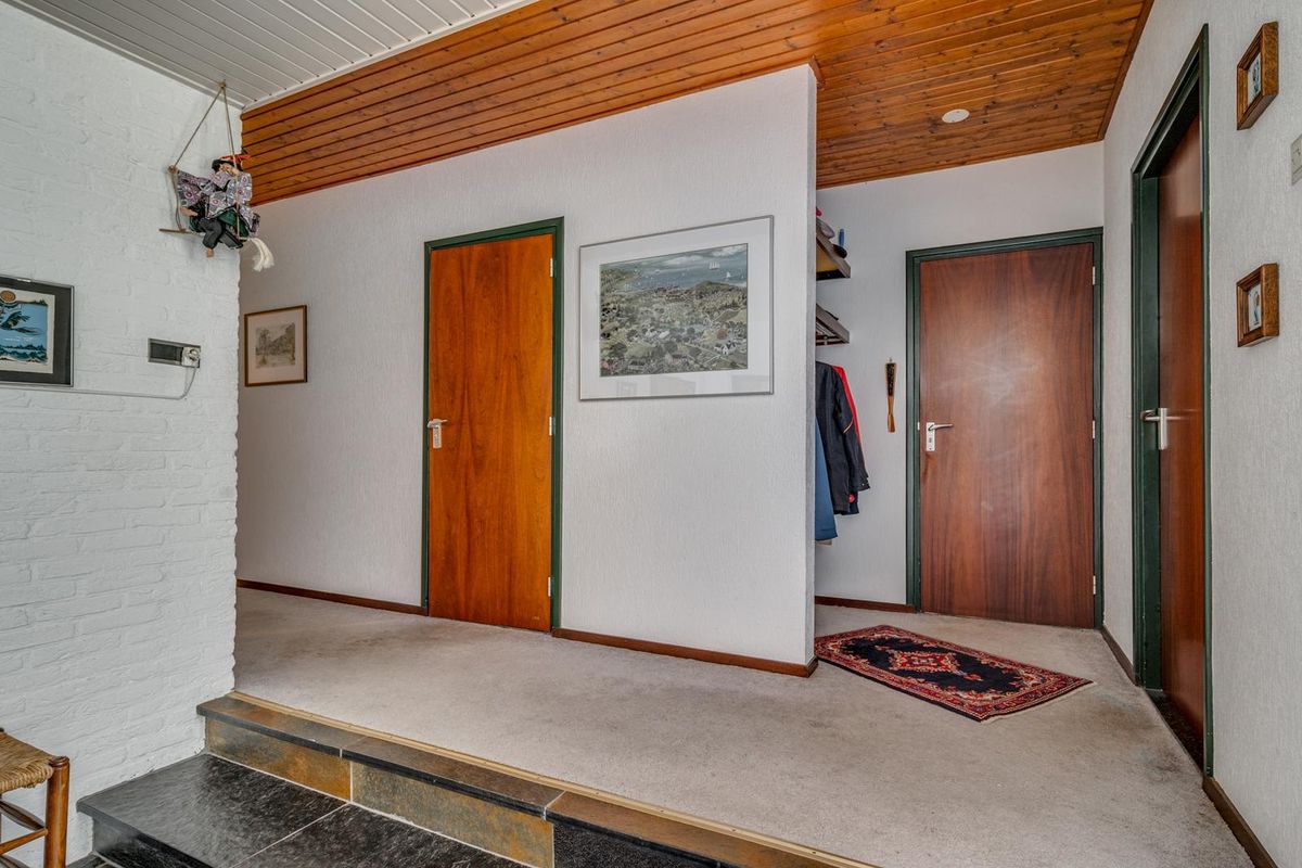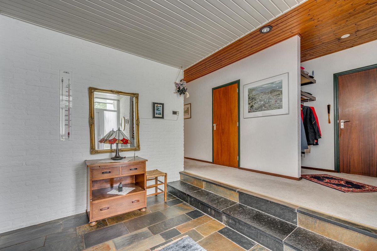De ruime ontvangsthal geeft toegang tot de woonkamer en keuken aan de linkerzijde en de slaapvertrekken, badkamer en toiletruimte aan de rechterzijde. De ruime L-vormige woonkamer is voorzien van een leistenen vloer, zeer veel lichtinval door de grote raampartijen en een sfeervolle gashaard. Middels een schuifpui is er toegang naar de tuin/ overkapping. Via de woonkamer is de zithoek van de woning te bereiken. De zithoek is verdekt opgesteld aan de linker achterzijde van de woning. Hier is een houthaard aanwezig en een schuifpui welke wederom gemakkelijk toegang geeft tot de tuin. De ruime leefkeuken is van alle inbouwapparatuur voorzien en geeft middels een loopdeur toegang tot de bijkeuken. De bijkeuken beschikt over de witgoedaansluitingen, loopdeur naar de tuin en trapgang naar de kelder.