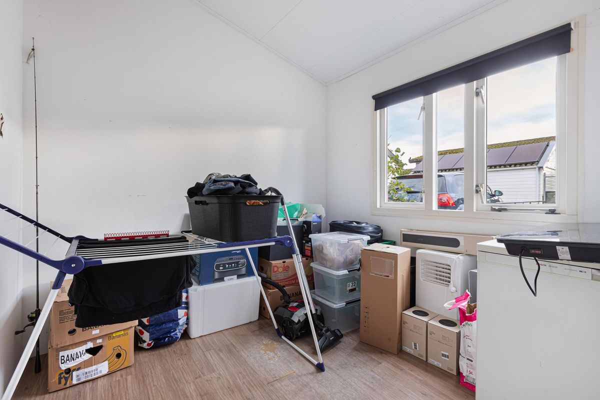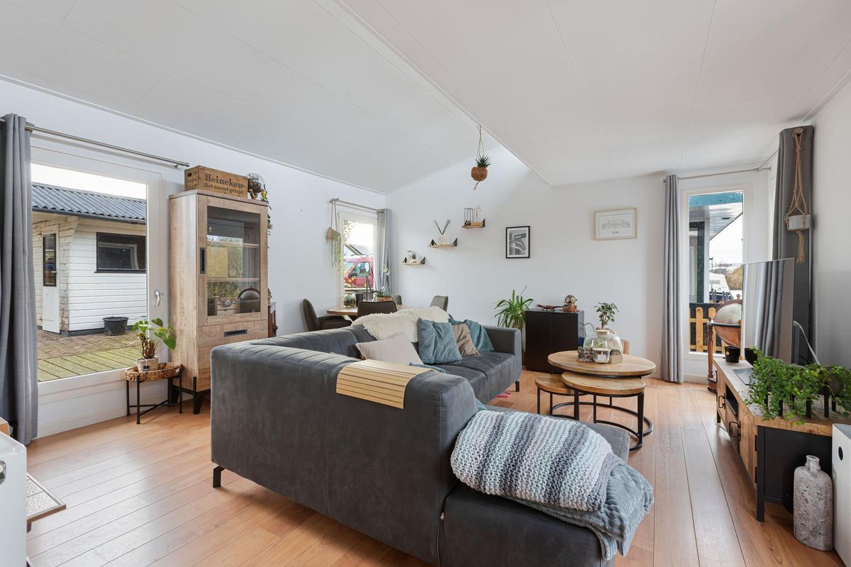 Ook buiten is er veel te genieten. De royale voortuin heeft een gunstige zonnestand, waardoor je vrijwel de hele dag heerlijk buiten kunt zitten. Verder is er een houten berging met werkruimte. In de woonark zelf is extra bergruimte aanwezig via een luik in de hal dat toegang geeft tot een praktische opbergruimte.