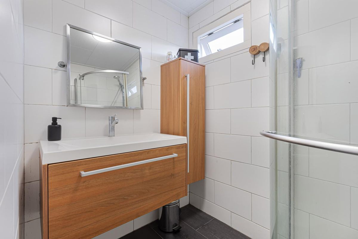 Via de onderhoudsarme voortuin stap je binnen in de hal. Aan de linkerkant bevindt zich de lichte en uitnodigende leefruimte, waar het zitgedeelte, de eethoek en de moderne hoekkeuken samenkomen. Dankzij grote ramen heb je hier prachtig zicht op het open vaarwater. De keuken is volledig ingericht met een koelkast, ruime laden, een gootsteen en een 4-pits gasstel met afzuigkap. Rechts van de hal ligt de royale slaapkamer, en de nette badkamer beschikt over een badmeubel en een douchecabine.