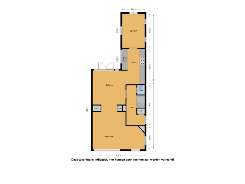 Ruimte voor koken, wassen en een stap naar buiten. De keuken en bijkeuken vormen samen een fijne, praktische plek in huis. De halfopen keuken biedt voldoende werk- en opbergruimte om dagelijks prettig te kunnen koken. Direct erachter ligt de bijkeuken, met extra keukenblok, een spoelbak, aansluitingen voor wasapparatuur en ruimte voor bijvoorbeeld een extra koelkast of vriezer. Ook is er een deur naar de tuin – handig én prettig in gebruik.