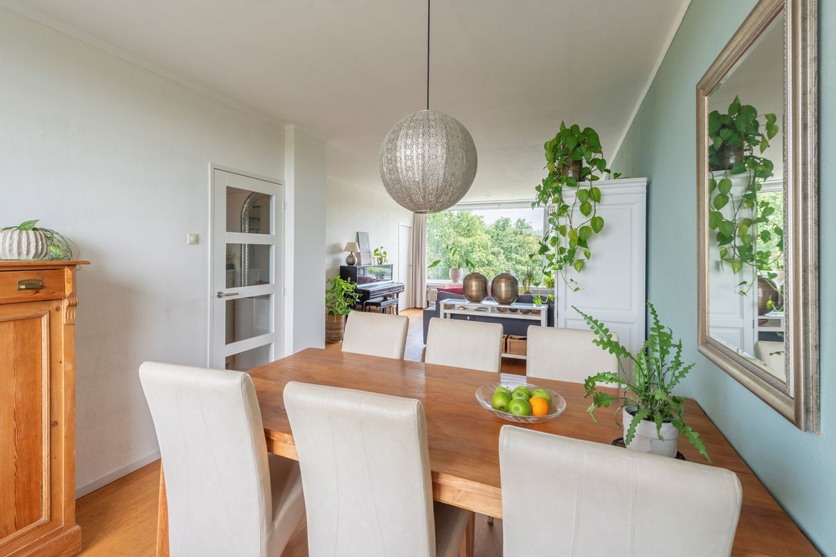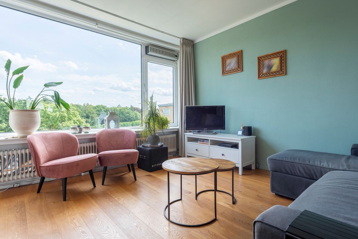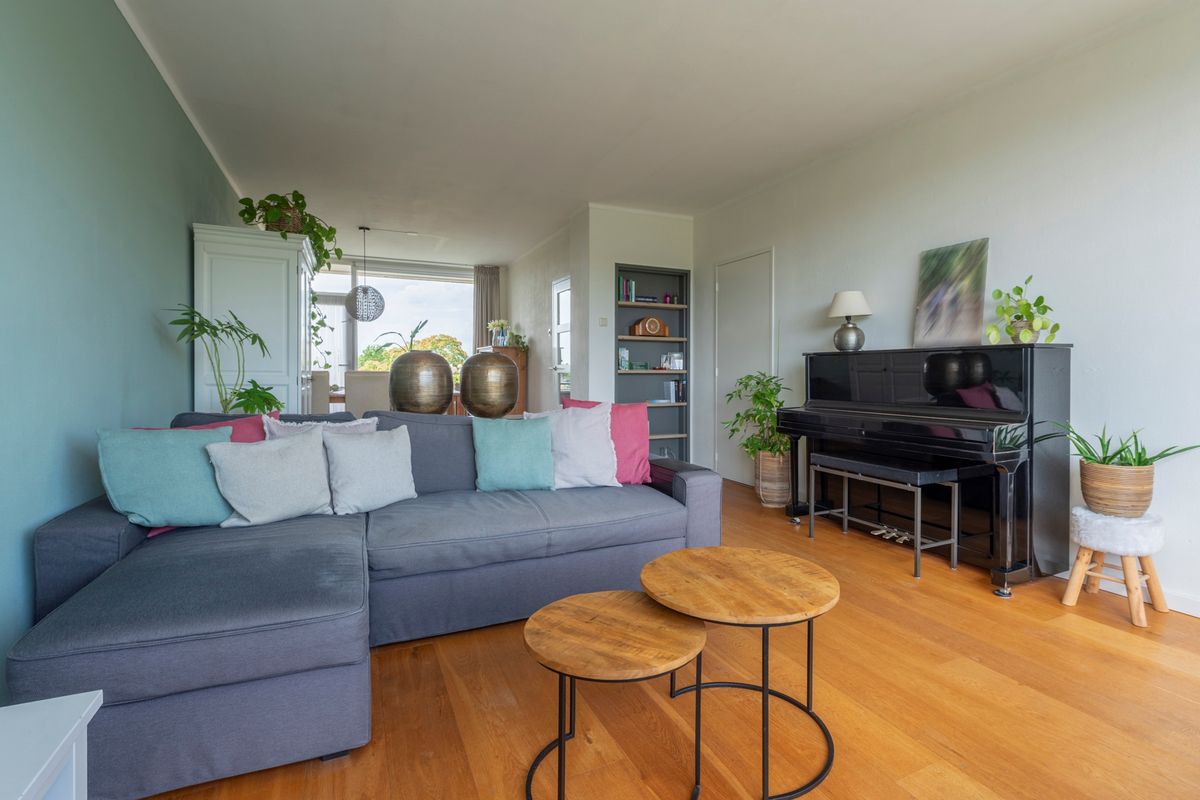Het hoofdbalkon (middag en avondzon) is tevens vanuit de keuken bereikbaar. Voorts vanuit de gang toegang tot de zeer royale woonkamer (massief eikenhouten vloer) met toegang tot het ruime hoofdbalkon op het westen georiënteerd. Door het betrekken van de voormalige slaapkamer bij de woonkamer is er een heerlijk ruime en lichte woonkamer ontstaan. Desgewenst kan de oorspronkelijke drie-kamer indeling relatief eenvoudig worden teruggebracht; hierdoor behoren twee ruime slaapkamers tot de mogelijkheden.