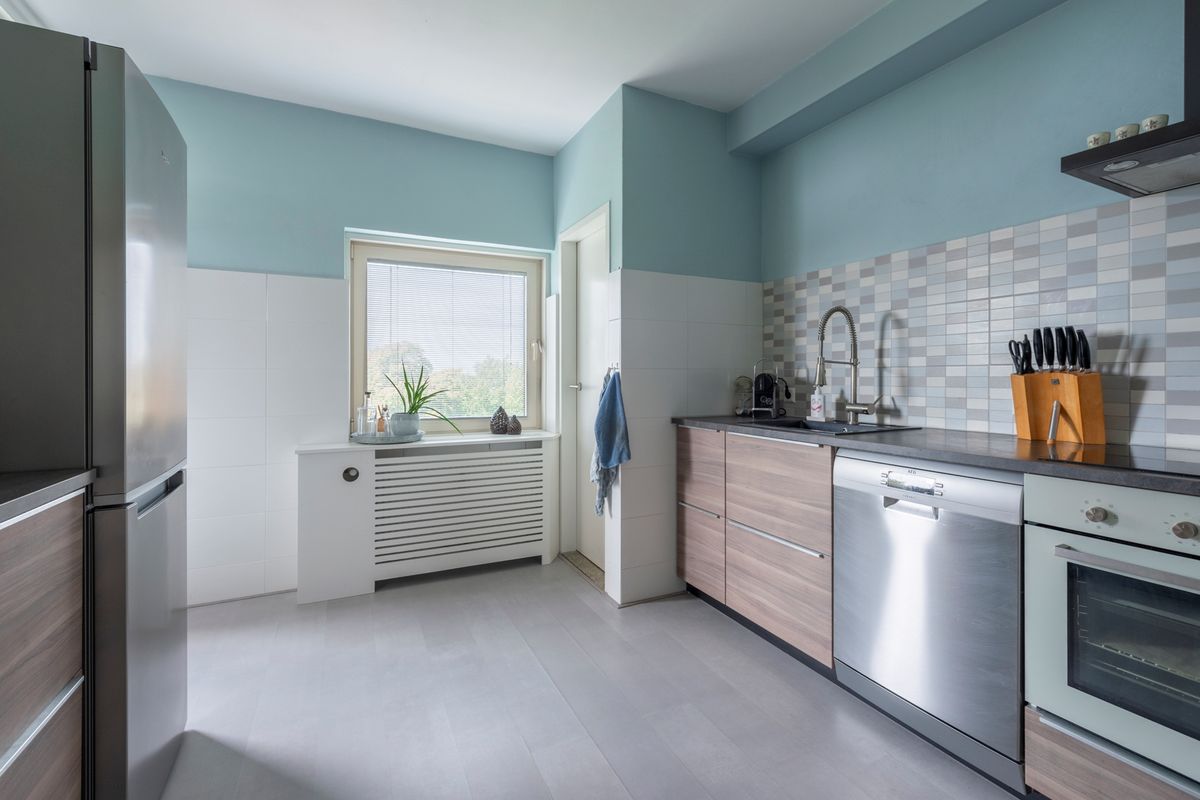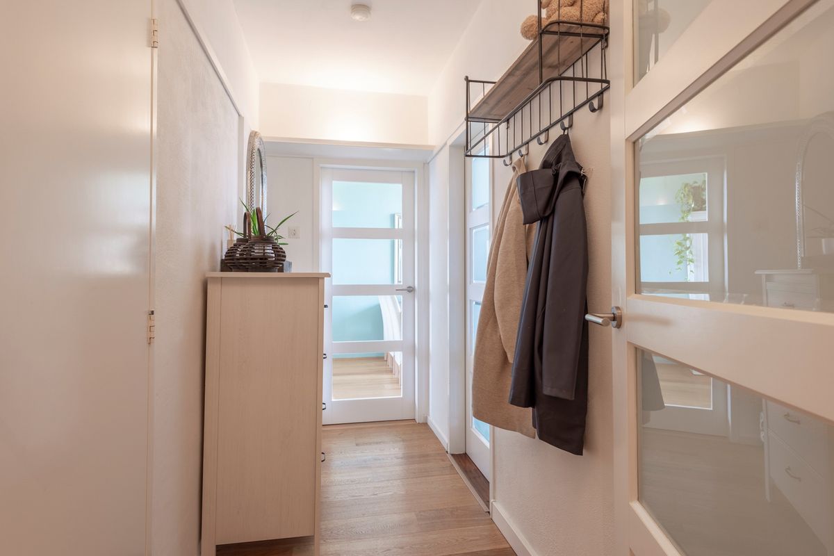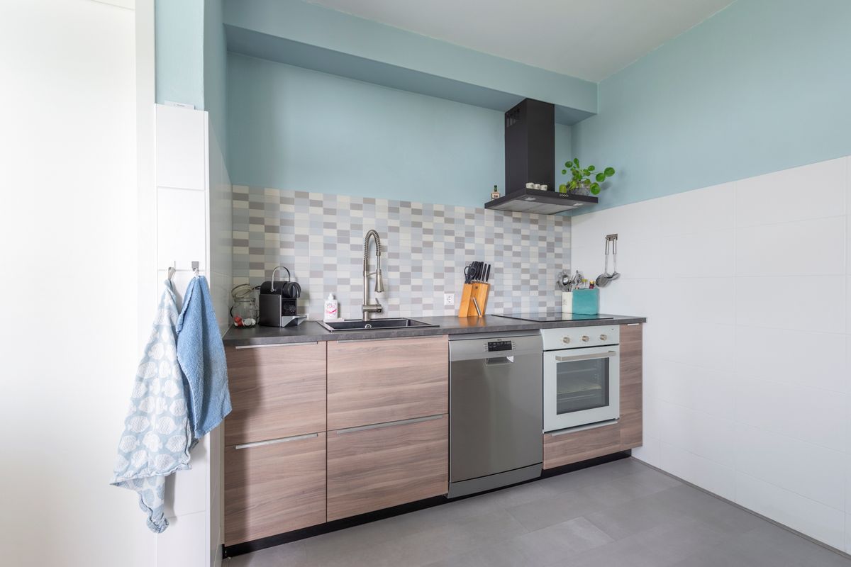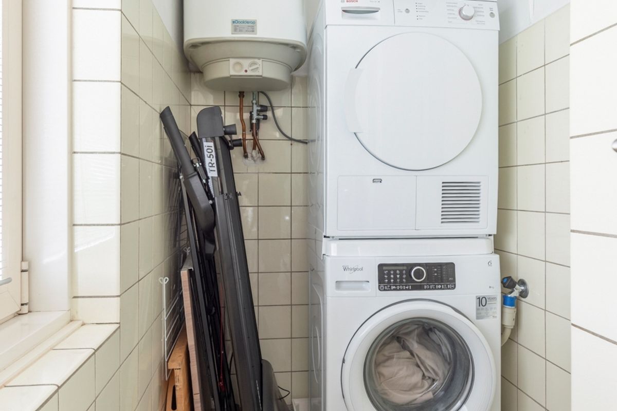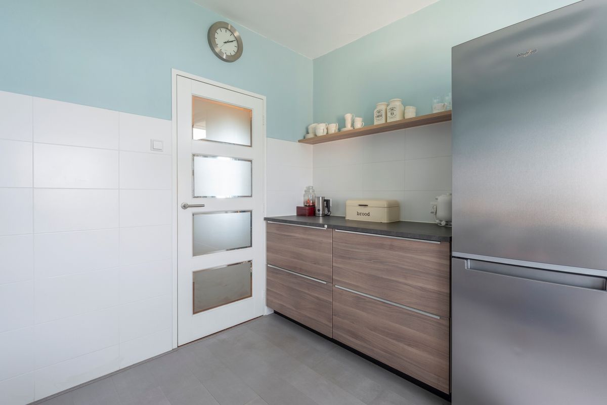 INDELING Tochtportaal met meterkast (2016), centrale gang, modern toilet, toegang tot badkamer (ligbad met douche, wastafelmeubel) met verbinding naar hoofdslaapkamer met balkon op het oosten gesitueerd (ochtendzon), omloop naar woonkamer. Vanuit de gang eveneens toegang tot een ruime keuken met moderne keukenopstelling (2016) aan weerszijden van het keukenvertrek, voorzien van de gangbare (inbouw)apparatuur waaronder een inductie kookplaat, afzuigkap, vaatwasser, koel-/vriescombinatie en voldoende bergruimte voor het opbergen van de keukenspullen. Vanuit de keuken is er toegang tot de zeer praktische bijkeuken met bergruimte en opstelling wasmachine - /droger en de 120 liter elektrische boiler.