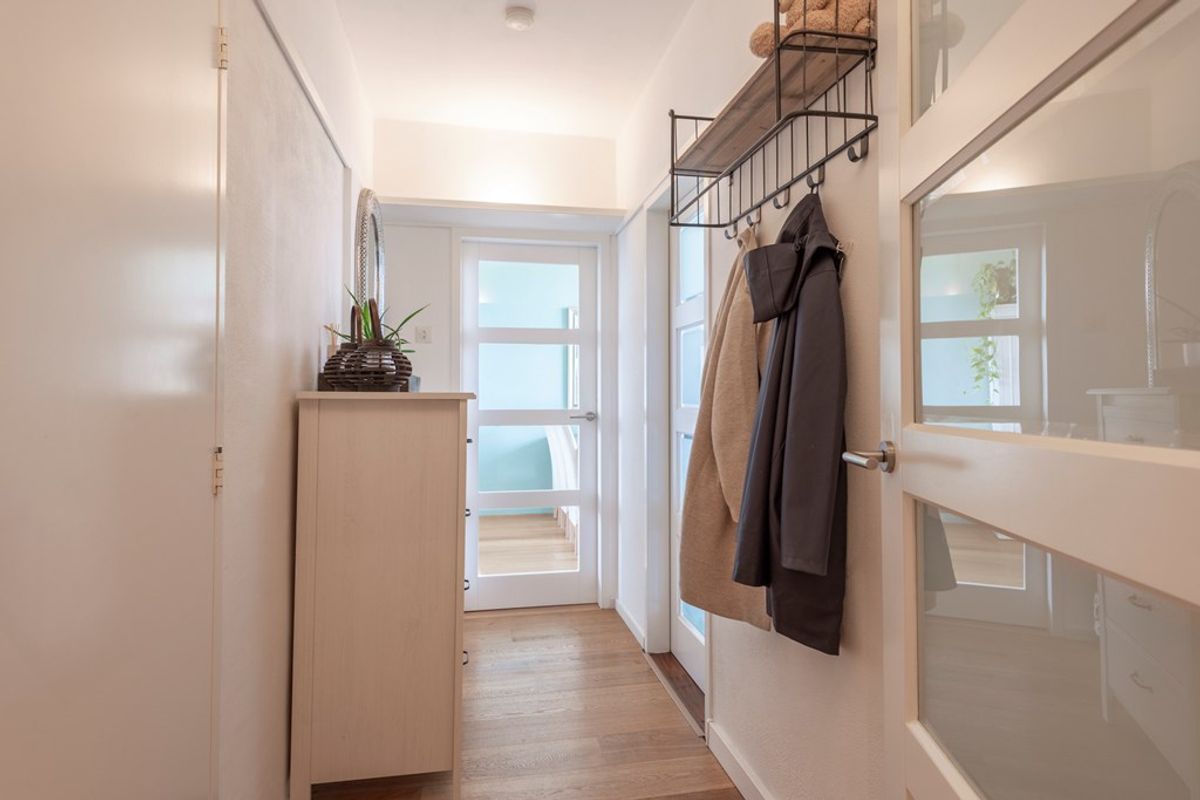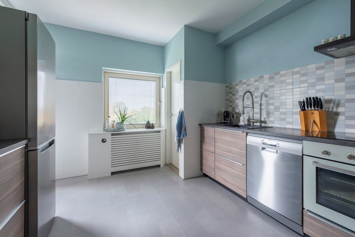 INDELING Tochtportaal met meterkast (2016), centrale gang, modern toilet, toegang tot badkamer (ligbad met douche, wastafelmeubel) met verbinding naar hoofdslaapkamer met balkon op het oosten gesitueerd (ochtendzon), omloop naar woonkamer. Vanuit de gang eveneens toegang tot een ruime keuken met moderne keukenopstelling (2016) aan weerszijden van het keukenvertrek, voorzien van de gangbare (inbouw)apparatuur waaronder een inductie kookplaat, afzuigkap, vaatwasser, koel-/vriescombinatie en voldoende bergruimte voor het opbergen van de keukenspullen. Vanuit de keuken is er toegang tot de zeer praktische bijkeuken met bergruimte en opstelling wasmachine - /droger en de 120 liter elektrische boiler.