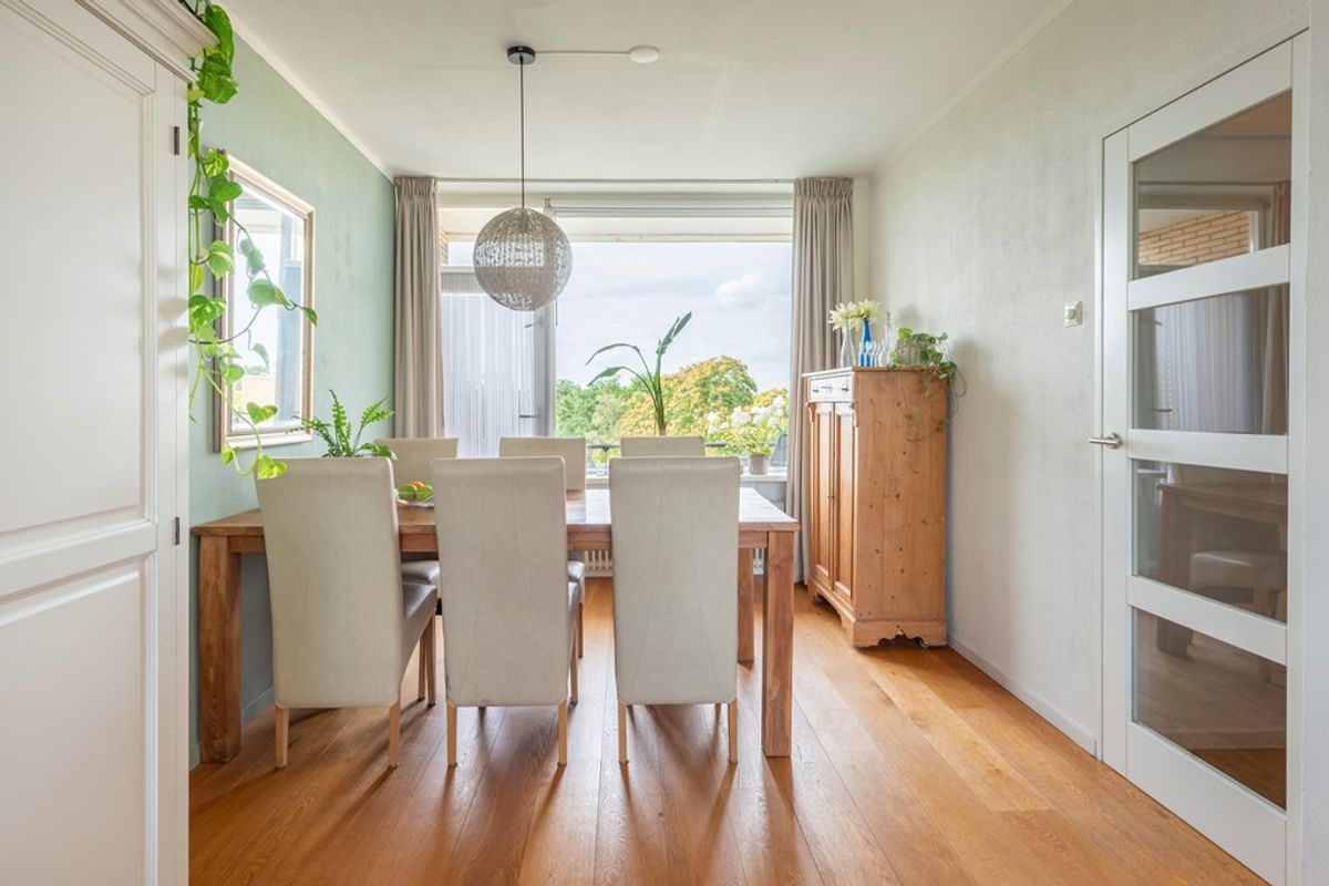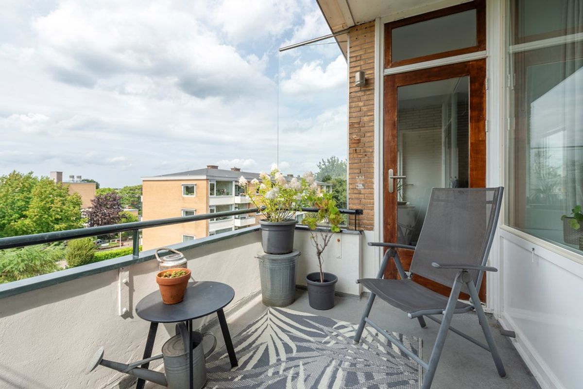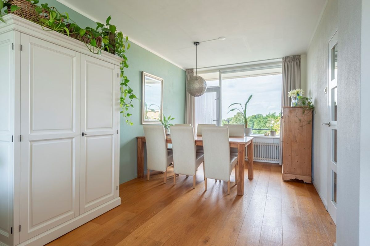Het hoofdbalkon (middag en avondzon) is tevens vanuit de keuken bereikbaar. Voorts vanuit de gang toegang tot de zeer royale woonkamer (massief eikenhouten vloer) met toegang tot het ruime hoofdbalkon op het westen georiënteerd. Door het betrekken van de voormalige slaapkamer bij de woonkamer is er een heerlijk ruime en lichte woonkamer ontstaan. Desgewenst kan de oorspronkelijke drie-kamer indeling relatief eenvoudig worden teruggebracht; hierdoor behoren twee ruime slaapkamers tot de mogelijkheden.