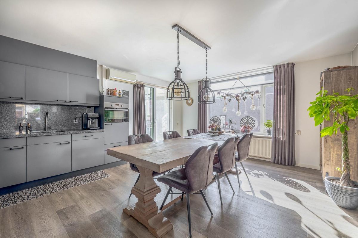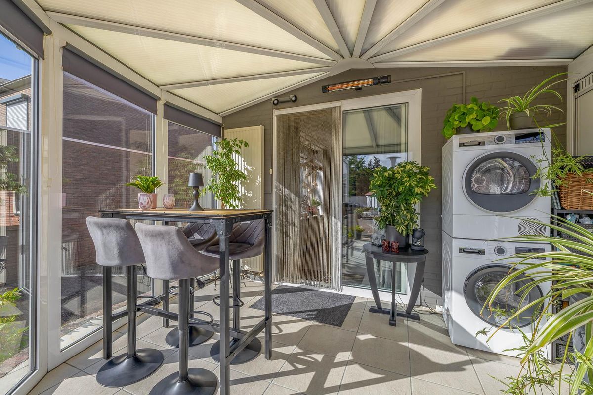 De woonkamer met open keuken is lekker ruim. In de woonkamer is een houtkachel aanwezig en in de open keuken is een airco aanwezig. De keuken is uitgerust met een inductiekookplaat, afzuigkap, combi oven/magnetron, vaatwasser en Amerikaanse koelkast met diepvries. De serre is voorzien van een tegelvloer en de witgoedaansluiting. Vanuit hier is er toegang tot de achtertuin.