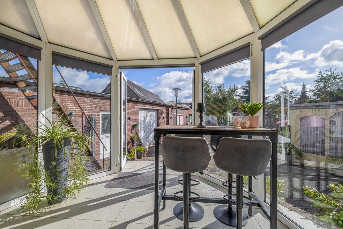 Naast de enorme woonruimte beschikt de woning over een aparte zolder/studio die bereikbaar is via het dakterras en een royale achtertuin met twee grote garages, een ruime werkplaats, twee houten tuinhuisjes en een overkapping. De brede pprit zorgt voor vrije toegang tot het eigen terrein.