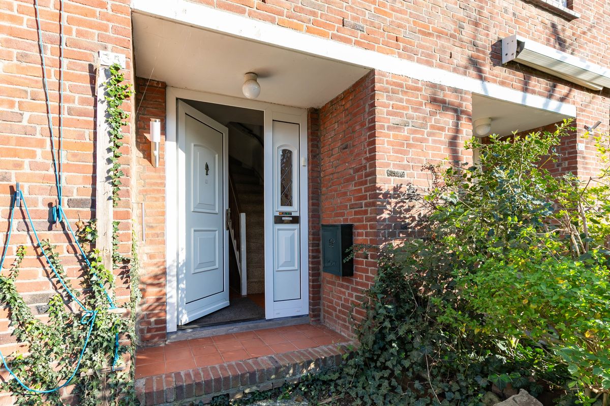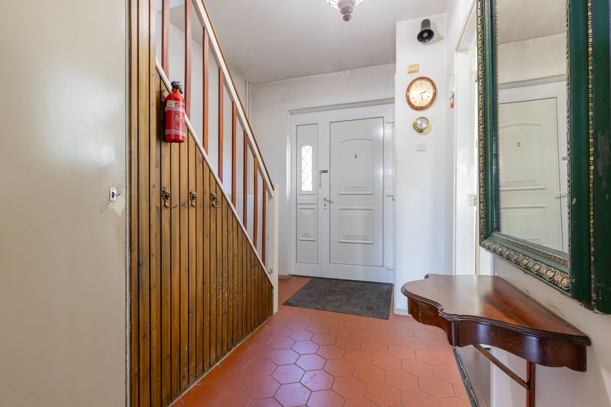 Aan de voorzijde ligt een verzorgde voortuin met toegang tot de woning. Via de entree kom je in een ruime hal met trapopgang, garderobe, toiletruimte en een praktische vaste kast.