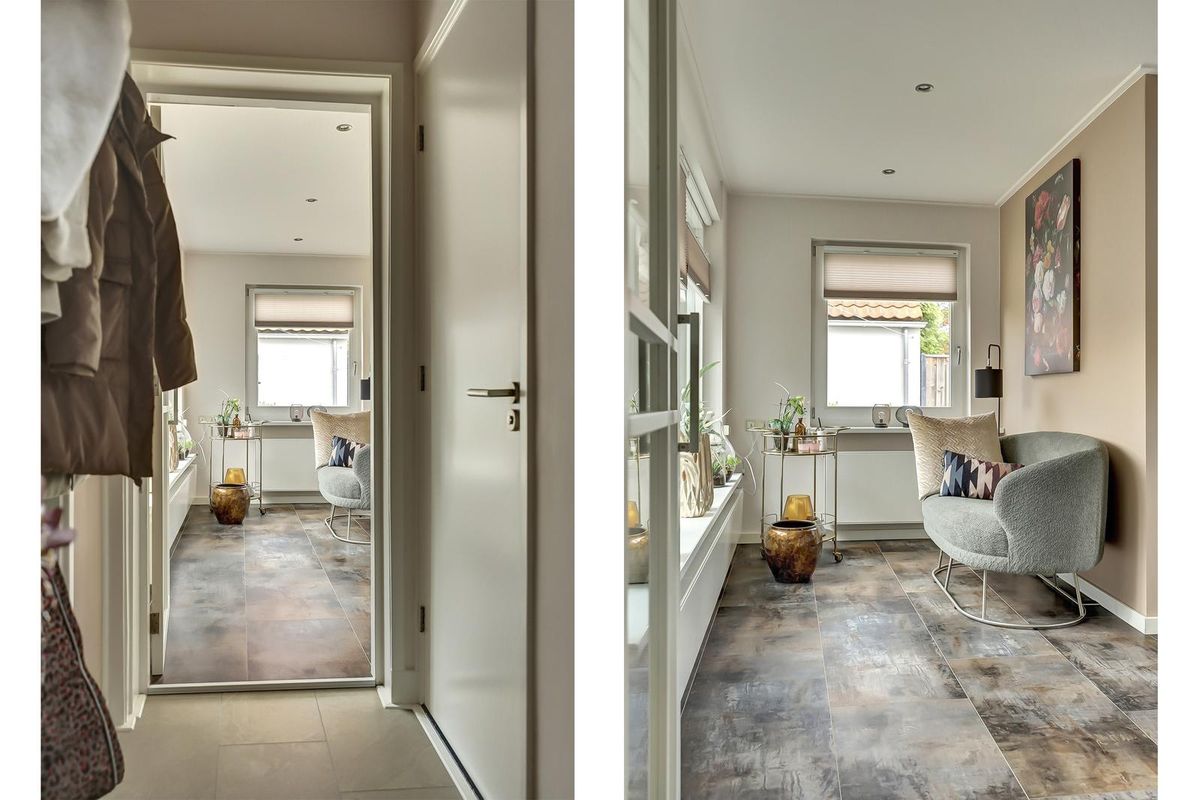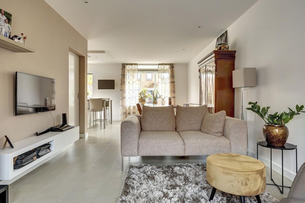 Via de entree met meterkast (incl. waterontharder) heeft u toegang tot de hal met trapopgang, de kelder, het toilet, de (bij)keuken en de woonkamer met luxe moderne woonkeuken. De doorzon woonkamer is modern afgewerkt met een lichte vloer (voorzien van vloerverwarming) en glad gestucte wanden. De ruimte voelt licht en open aan dankzij de grote ramen aan zowel de voor- als achterzijde, waardoor er veel daglicht binnenvalt. Er is volop ruimte voor een comfortabele zithoek en een grote eettafel, waardoor dit een fijne leefruimte is voor het hele gezin.