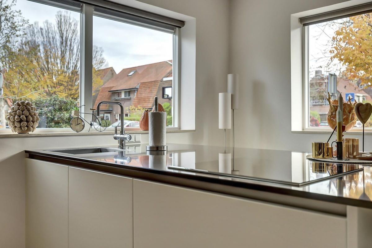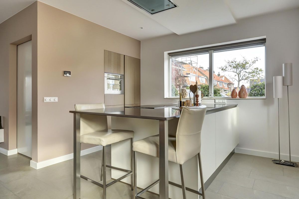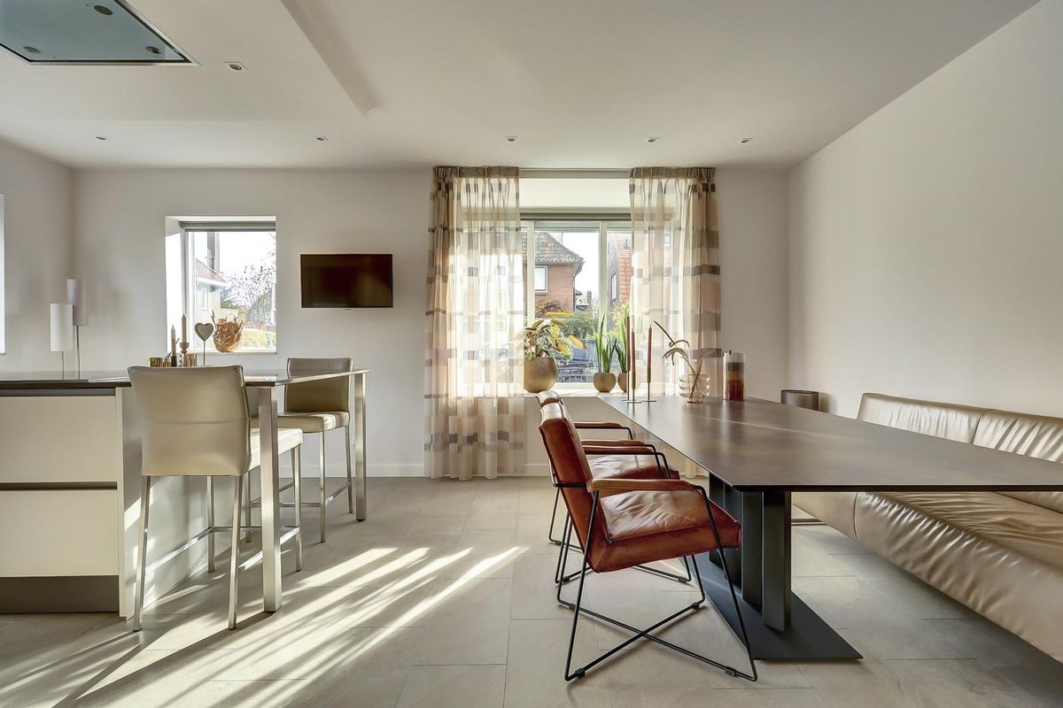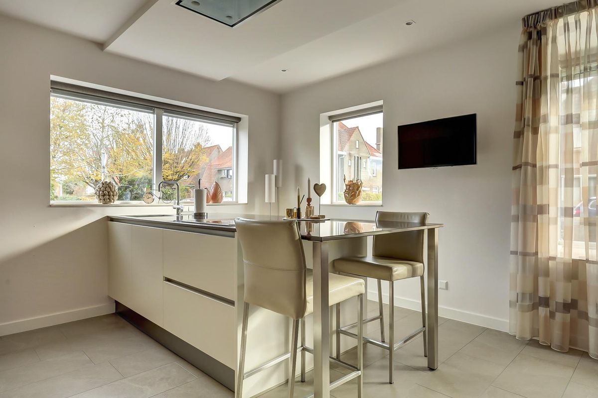 De moderne woonkeuken vernieuwd in 2013, vormt het hart van de woning. Deze is uitgerust met een kookeiland en bar met inductiekookplaat en afzuiging, combi-oven, koelkast met vriezer en vaatwasser. De strakke afwerking en het eigentijdse design maken deze keuken een heerlijke plek om te koken en samen te zijn.