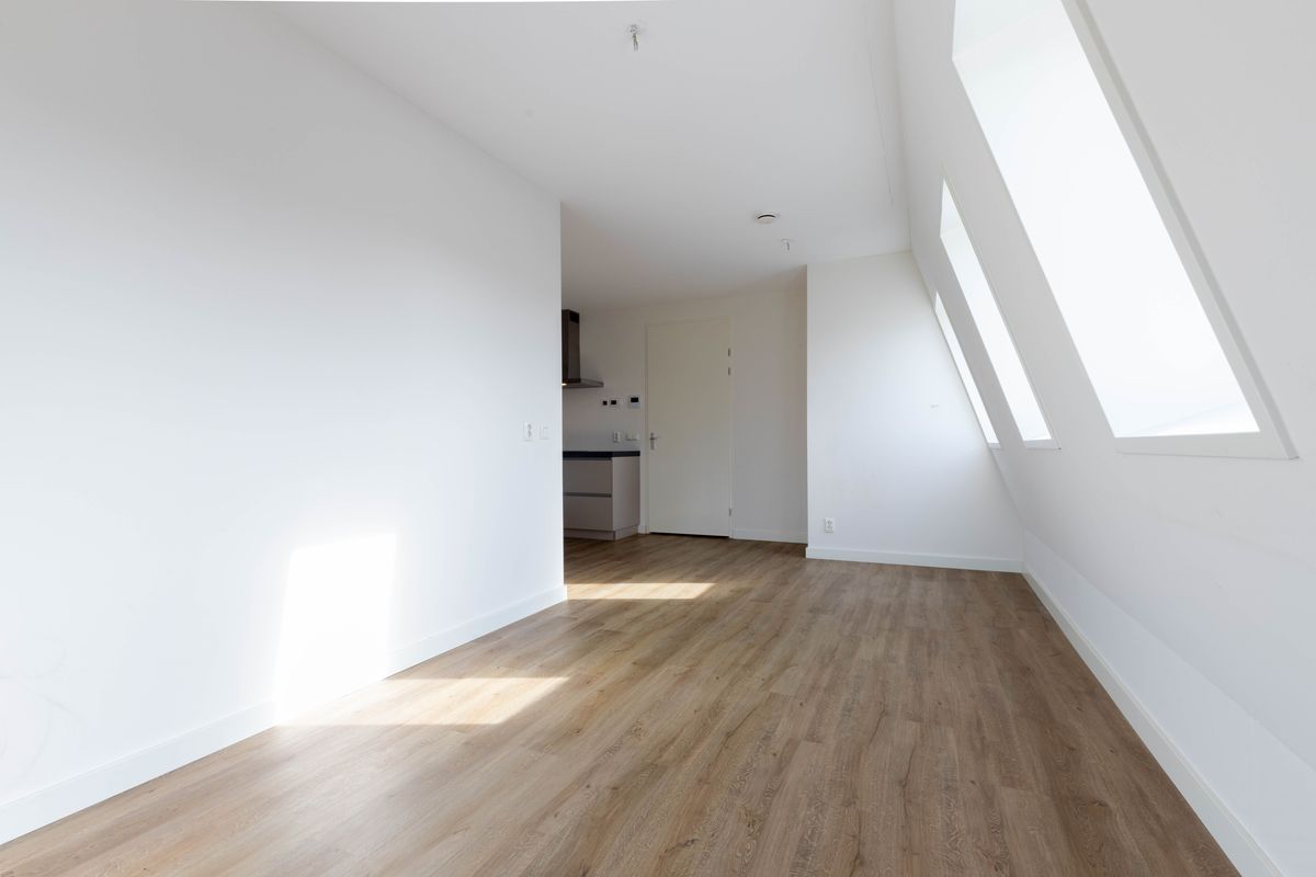 Het appartement van circa 50 m² heeft een slimme indeling: een entree met hal en toiletruimte, een moderne badkamer met inloopdouche en wastafel, een lichte en ruime woonkamer met ramen in het schuine dak waardoor veel natuurlijk licht binnenvalt en een open keuken in L-opstelling voorzien van alle moderne inbouwapparatuur. De slaapkamer is van prima formaat en biedt voldoende ruimte voor een comfortabel bed en kasten.