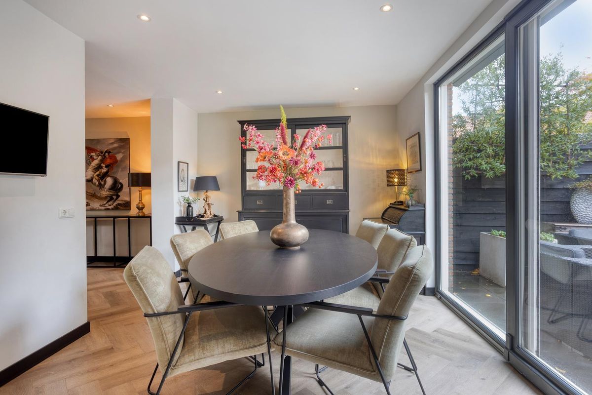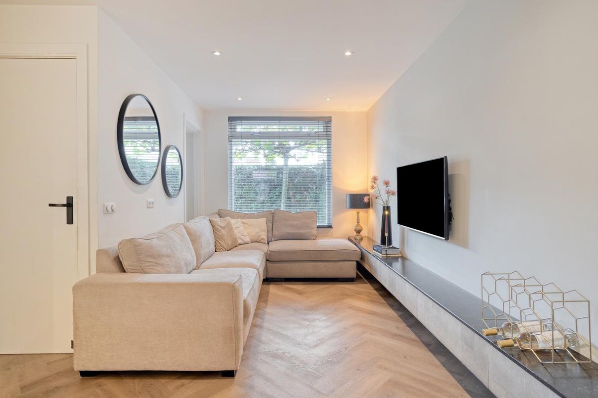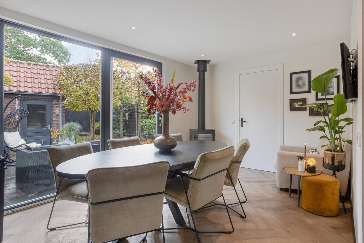 - Ruime woonkamer met veel lichtinval door schuifdeuren naar de achtertuin