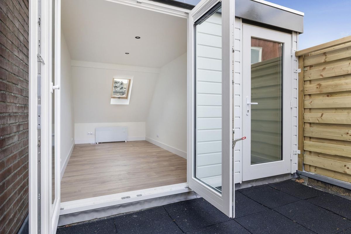 Via een privé-entree en trapopgang bereik je het ruime dakterras van ca. 30 m², dat als warme welkom direct toegang biedt tot het appartement.