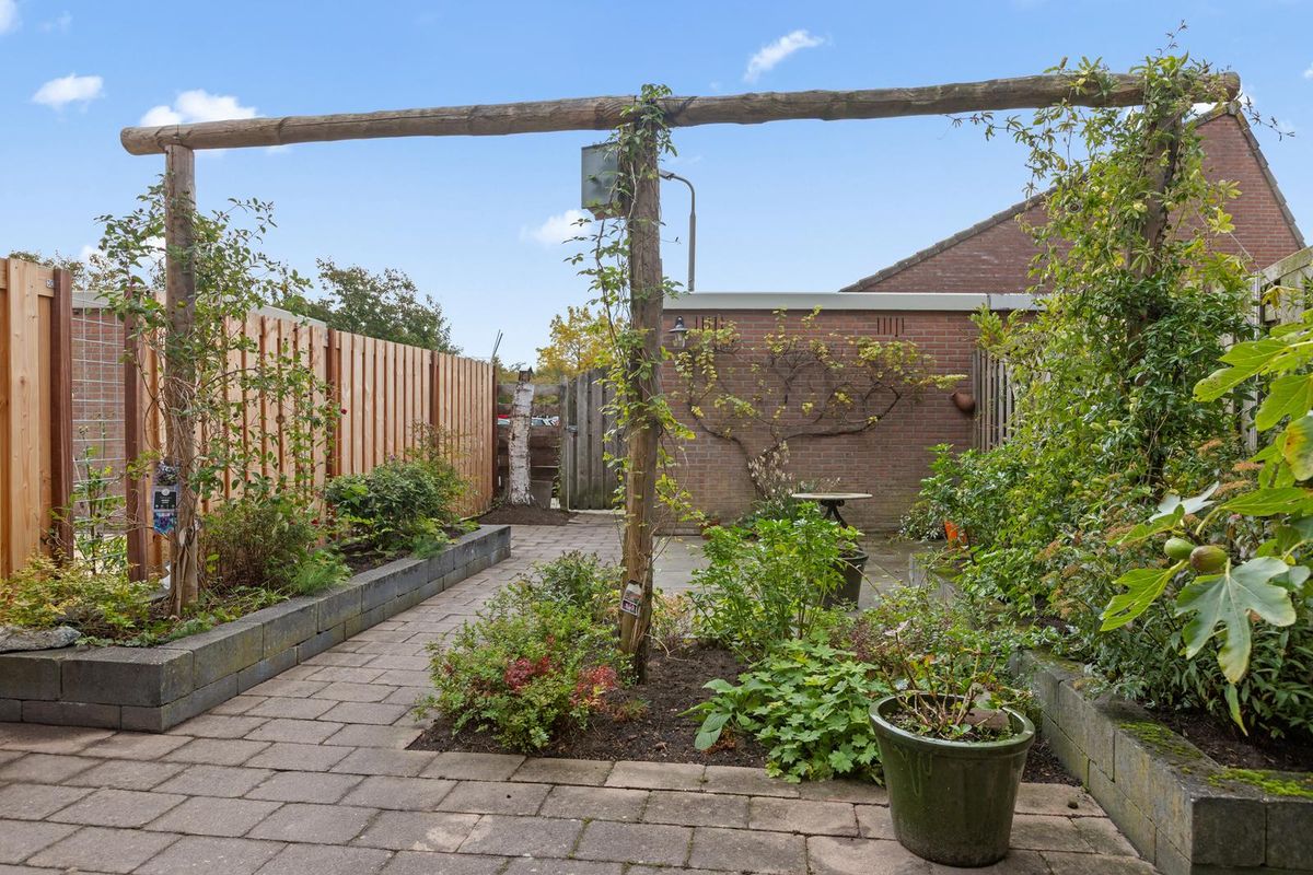 De achtertuin is fraai aangelegd en biedt een heerlijke plek om buiten te zijn. Er zijn twee terrassen, één direct bij het huis en één achterin de tuin – perfect om te genieten van zowel de zon als de schaduw. Een sfeervolle pergola zorgt voor extra charme. Achterin de tuin staat een handige berging waar je fietsen, tuinkussens en gereedschap kunt opbergen. Via de achterom fiets je zó de wijk uit. Parkeren doe je gemakkelijk op de parkeerpleintjes in de buurt.