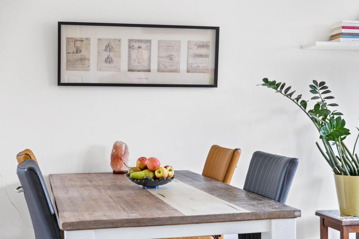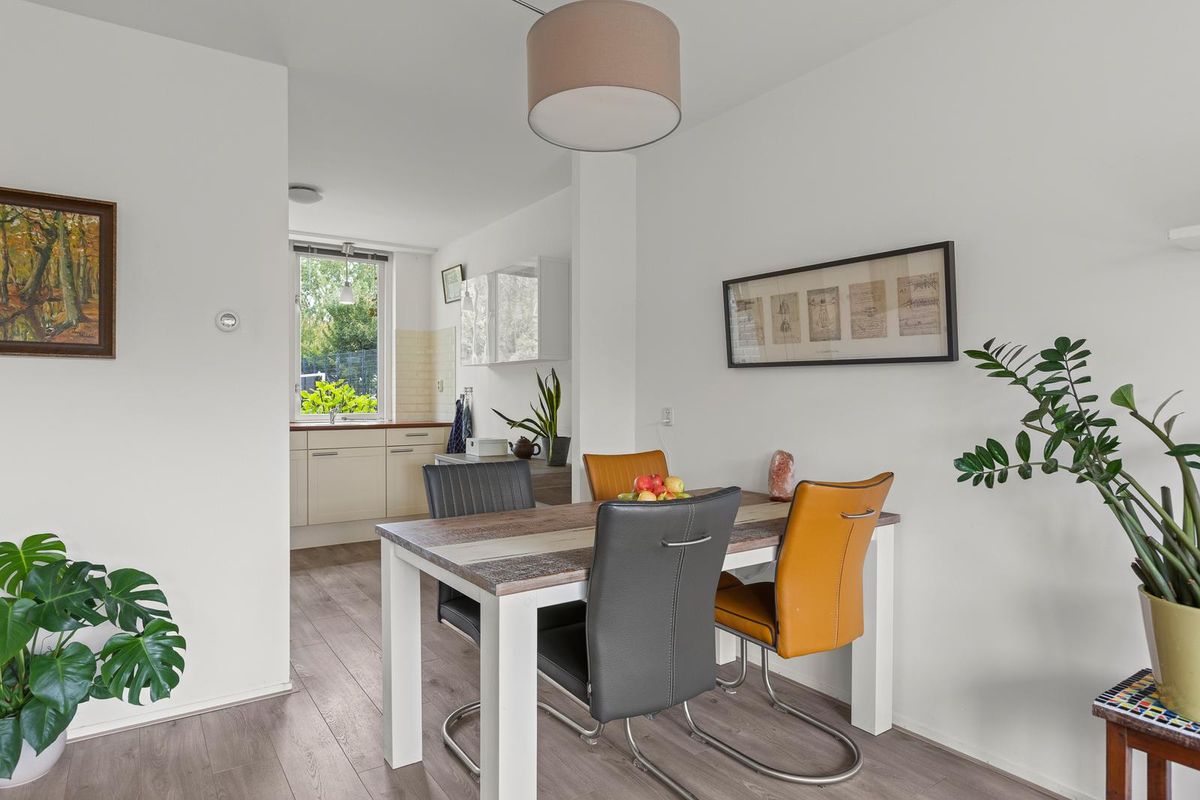 De halfopen keuken aan de voorzijde biedt een vrij uitzicht op de autovrije straat en het speelveldje. De keuken is voorzien van alle benodigde apparatuur: gaskookplaat met afzuigkap, koel-/vriescombinatie, oven en vaatwasser. Hier kook je met plezier voor het hele gezin! Naast de keuken is er voldoende ruimte voor een grote eettafel, ideaal voor gezellige diners of spelletjesavonden.