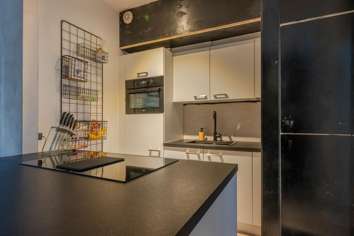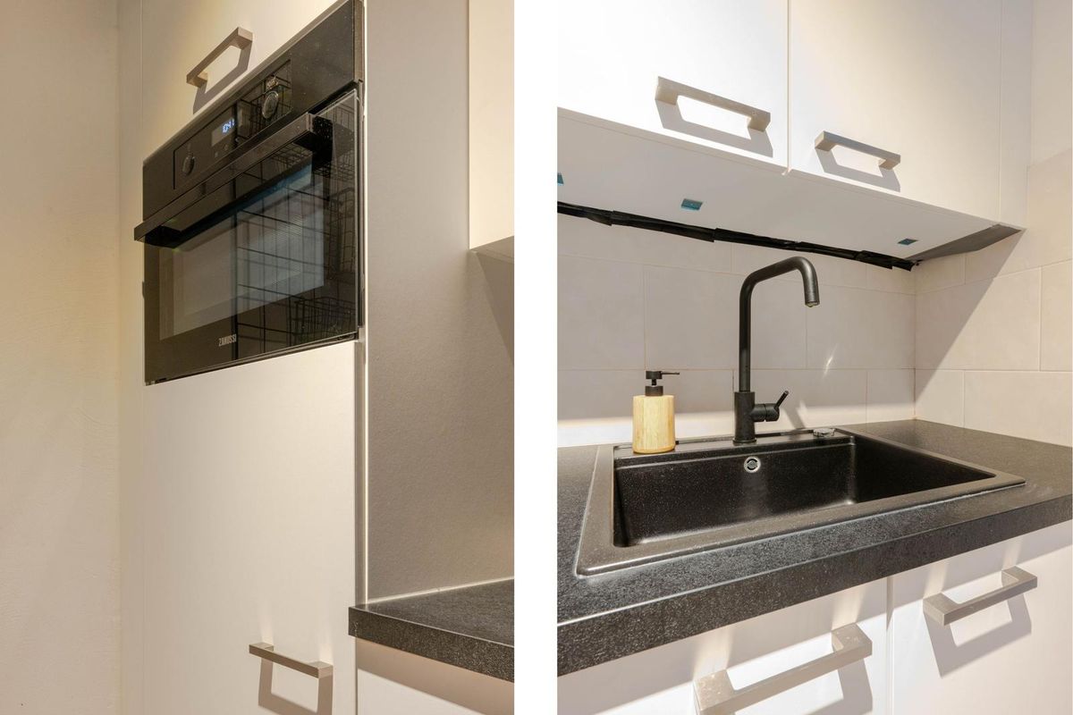 * Keukenruimte voorzien van inbouwkeuken met een kookeiland en allerhande inbouwapparatuur: inductiekookplaat met geïntegreerd afzuigsysteem, combimagnetron en een koelkast met vriesvak,