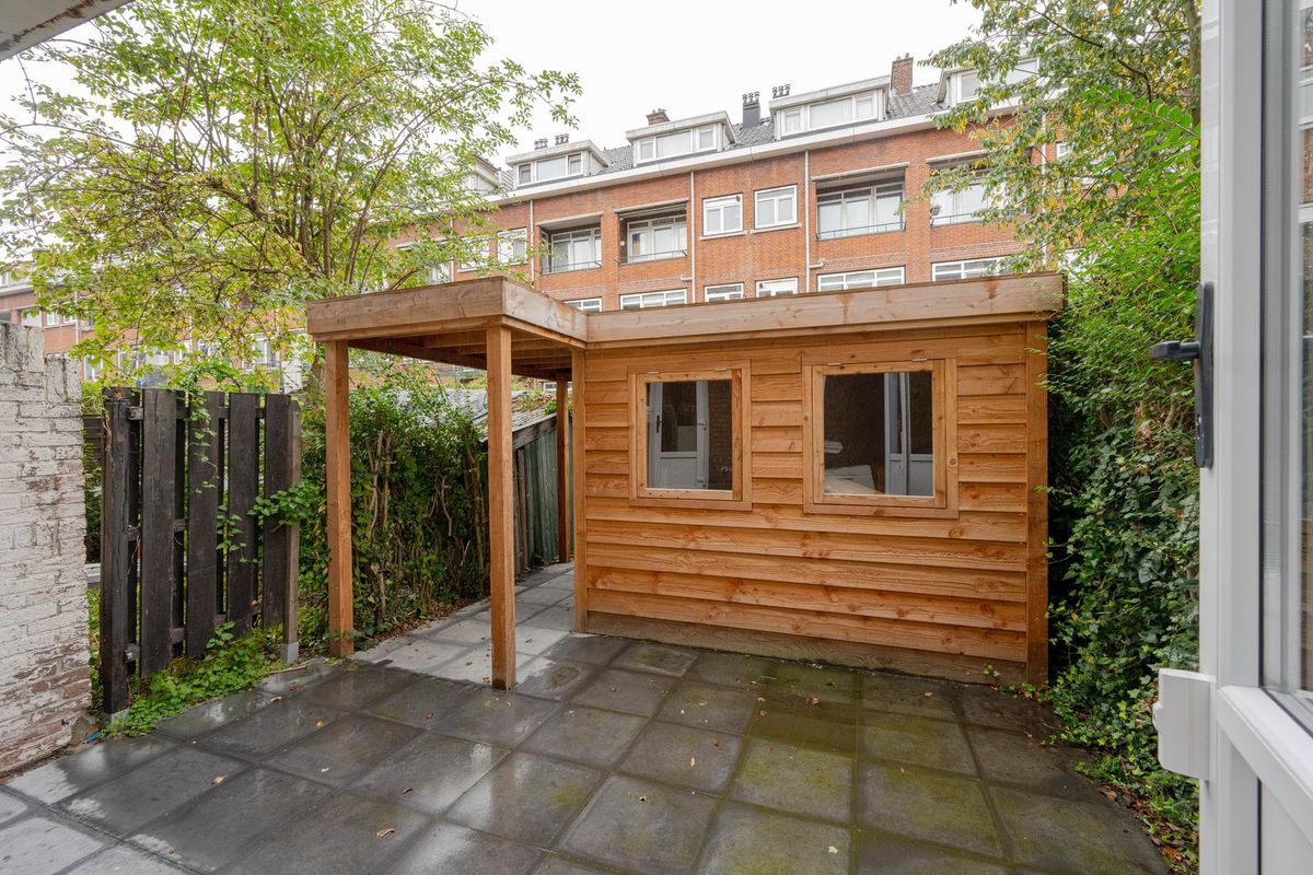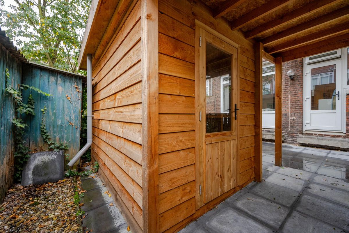 * Knusse achtertuin (ca. 33 m²) gelegen op het oosten, voorzien van bestrating en een nieuwe houten schuur/ multifunctionele ruimte (ca. 6 m²); de ruimte is geïsoleerd en is hierdoor ook voor andere doeleinden te gebruiken.