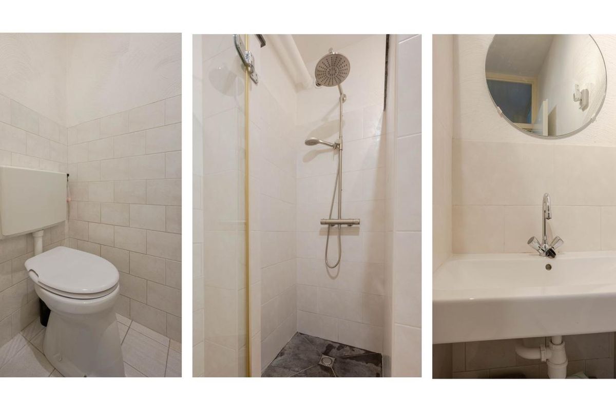 * Badkamer gedeeltelijk voorzien van betegeling, douche, wastafel en het toilet.