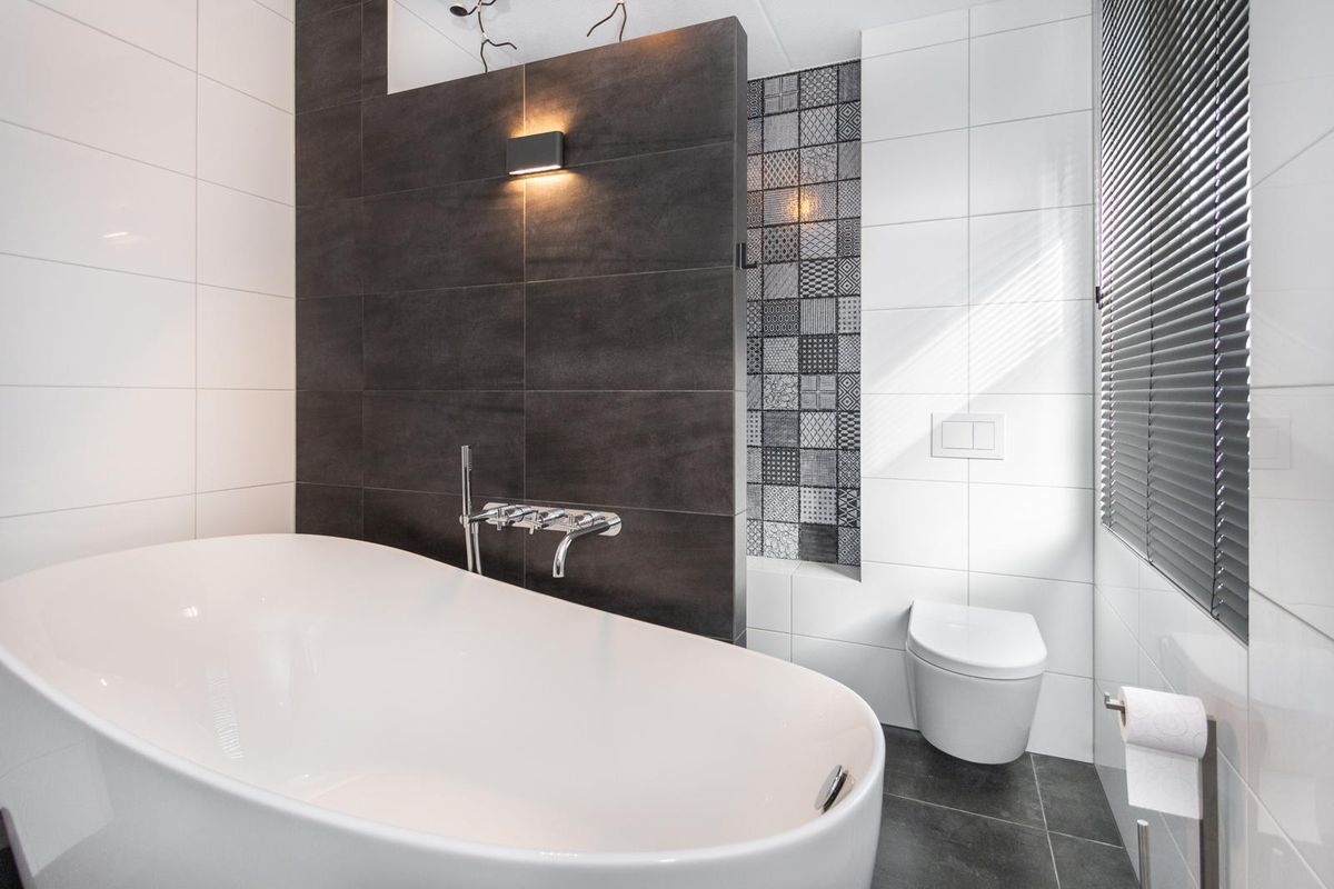 Op de eerste verdieping bevinden zich drie ruime en comfortabele slaapkamers, elk voorzien van rolluiken en raamhorren. De moderne badkamer is praktisch ingericht en beschikt over een luxe ligbad met wandkranen, een inloopdouche met regendouche en ruime nis, een dubbel wastafelmeubel met extra muurkast, toilet en designradiator.