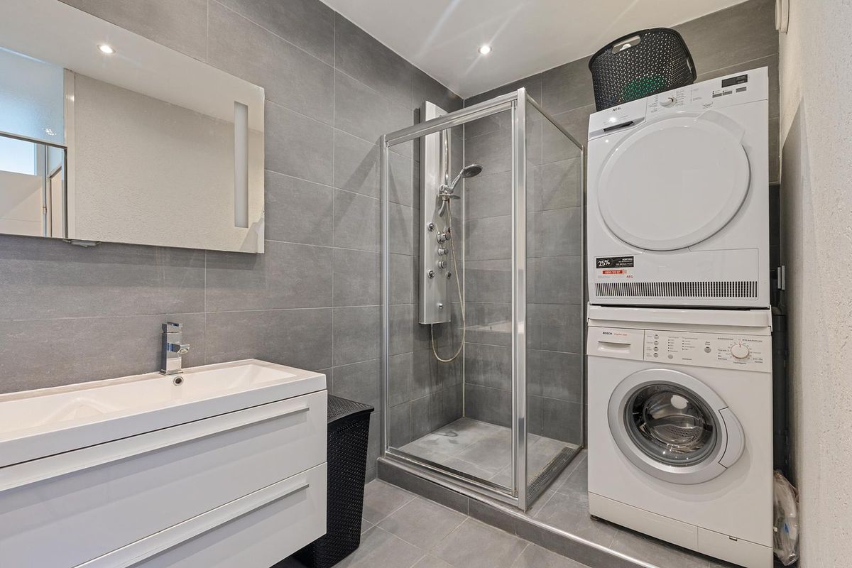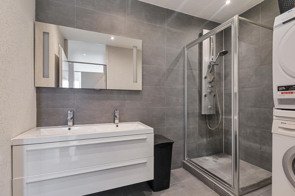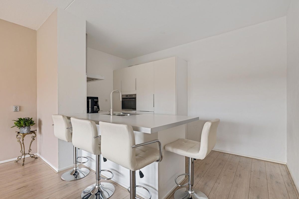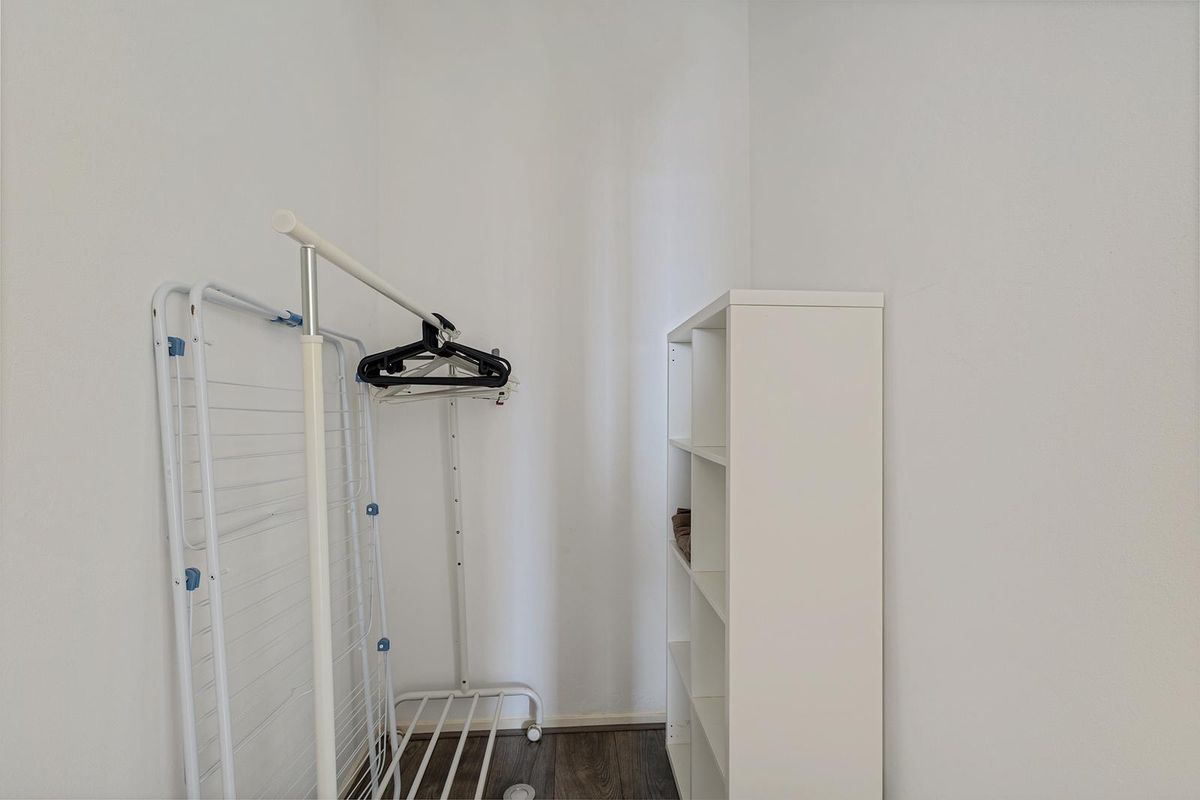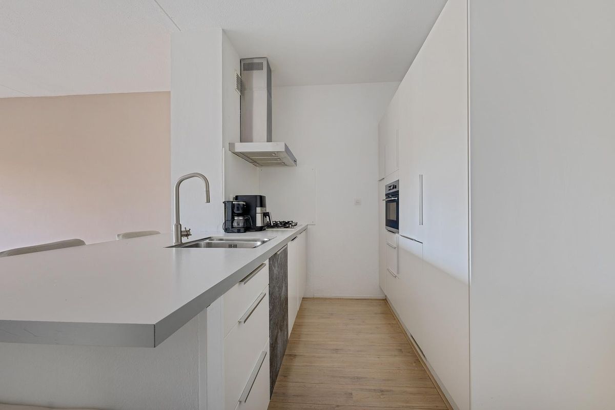 On the ground floor, you’ll find your private storage room, ideally located directly behind the main entrance hall, as well as your private parking space in the garage nearby. The elevator takes you to the third floor, where this lovely apartment is situated. Upon entering, you’re welcomed by a bright hallway with a meter cupboard and access to all rooms. The living room at the rear feels spacious and modern, thanks to its sleek finish and the beautiful laminate flooring that runs throughout the apartment. The open kitchen with a cozy breakfast bar offers seating for four and comes equipped with built-in appliances: a refrigerator, freezer, extractor hood, oven, and 5-burner gas cooktop. The apartment features two bedrooms, one of which has access to the balcony—a wonderful spot to enjoy the sun. Prefer a larger living room? It’s easy to combine this bedroom with the living area, a popular modification in this complex. In addition, there’s a handy storage closet, a separate toilet with wall-hung WC and washbasin, and a modern, fully tiled bathroom with a shower cabin, double sink vanity, and a connection for the washing machine. On the same floor, there’s also an extra storage room—a unique feature for this apartment!