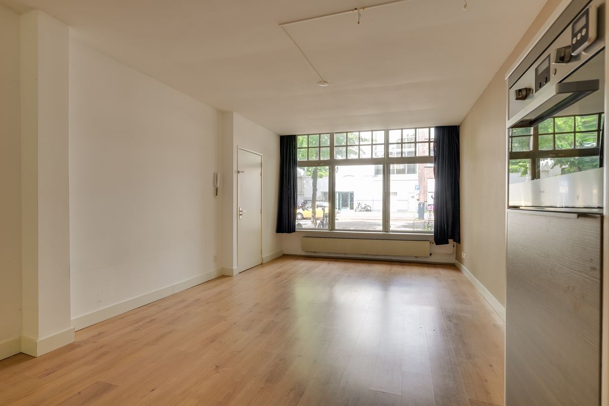 De woning betreed je via de voordeur aan de straatzijde. Je komt binnen in een lichte woonkamer met hoge plafonds (3,65 m!) en grote ramen aan de voorzijde. De open keuken is modern uitgevoerd, voorzien van inbouwapparatuur zoals een oven, inductiekookplaat, afzuigkap en spoelbak.