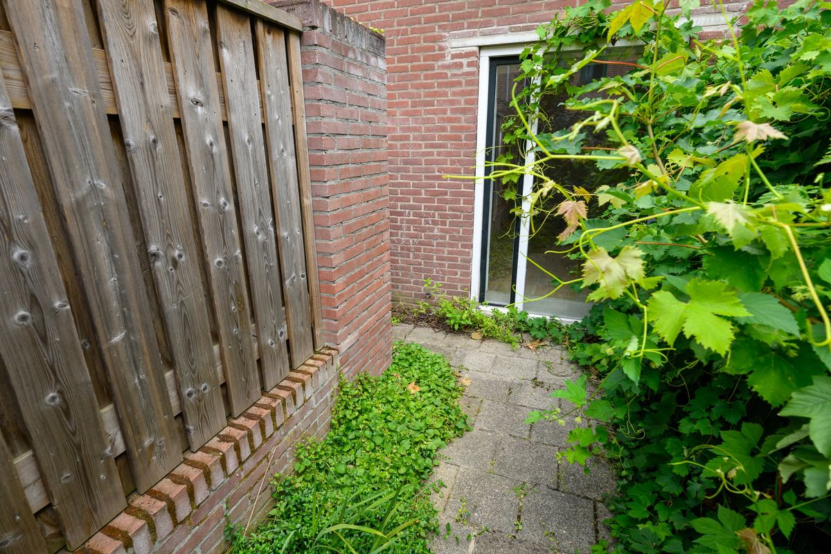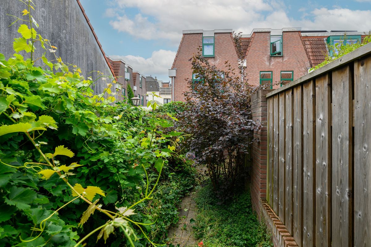 De tuin van circa 26 m² ligt op het zuiden en biedt volop zon en privacy. Ideaal om te ontspannen, of buiten te eten — een waardevolle buitenruimte in de binnenstad van Leiden.