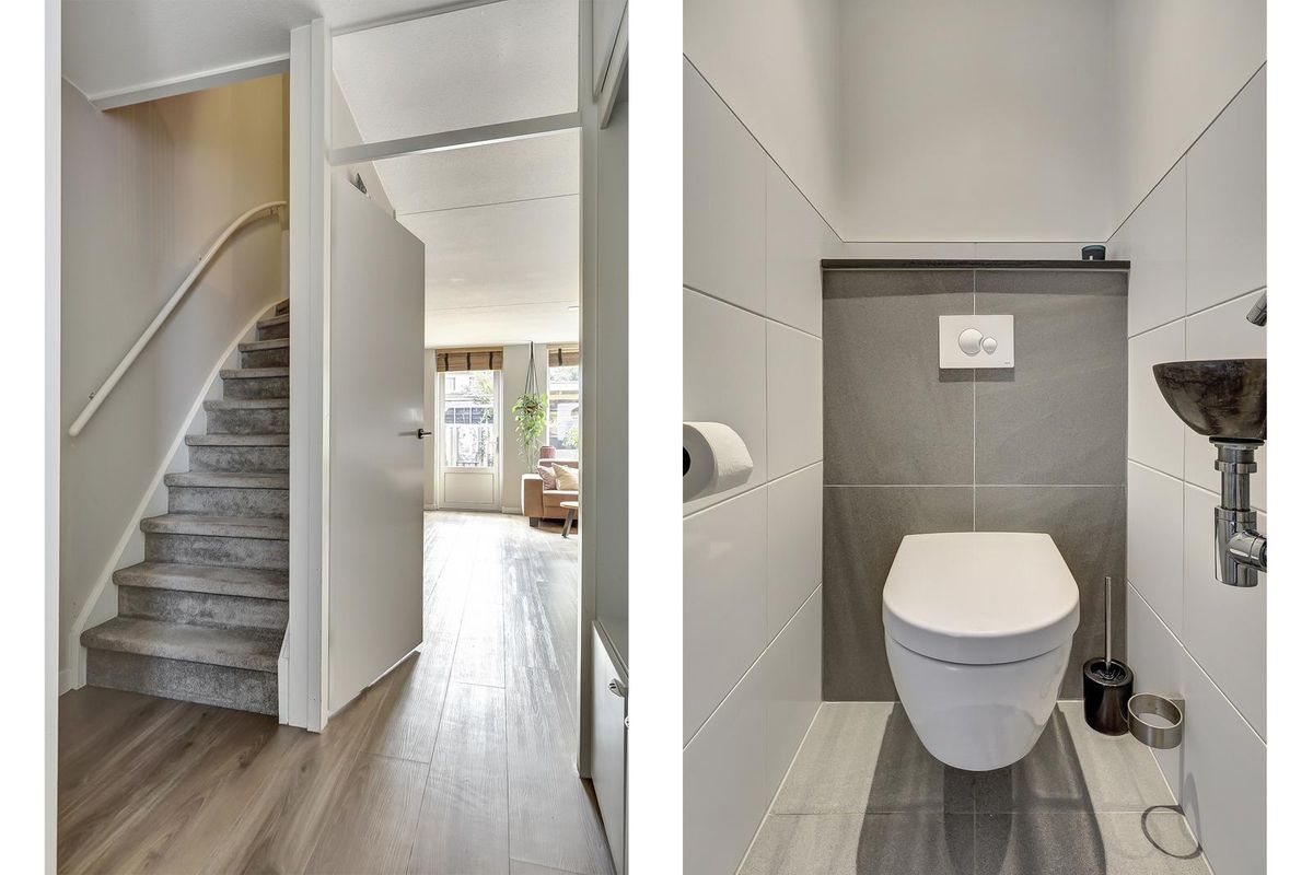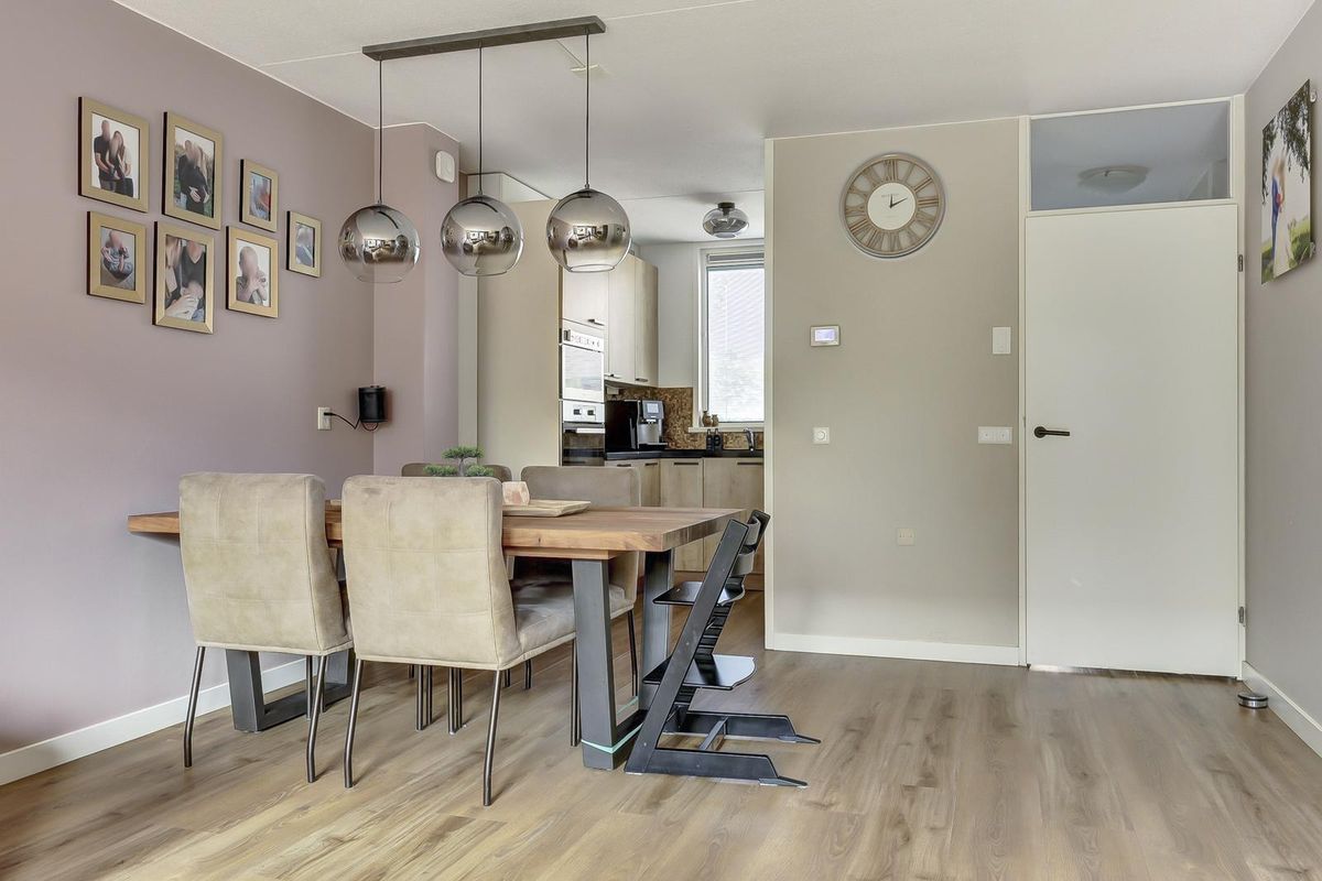 Binnen tref je een smaakvol afgewerkt huis dat de afgelopen jaren op belangrijke punten is vernieuwd. Zo is de luxe keuken in 2018 geplaatst en de badkamer in december 2019. De woonkamer voelt ruim en licht dankzij de grote ramen en strakke afwerking, en de airco zorgt voor extra comfort op warme dagen. Daarnaast is de woning door de kunststof kozijnen met HR++ glas onderhoudsarm.