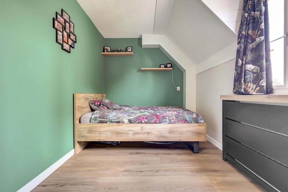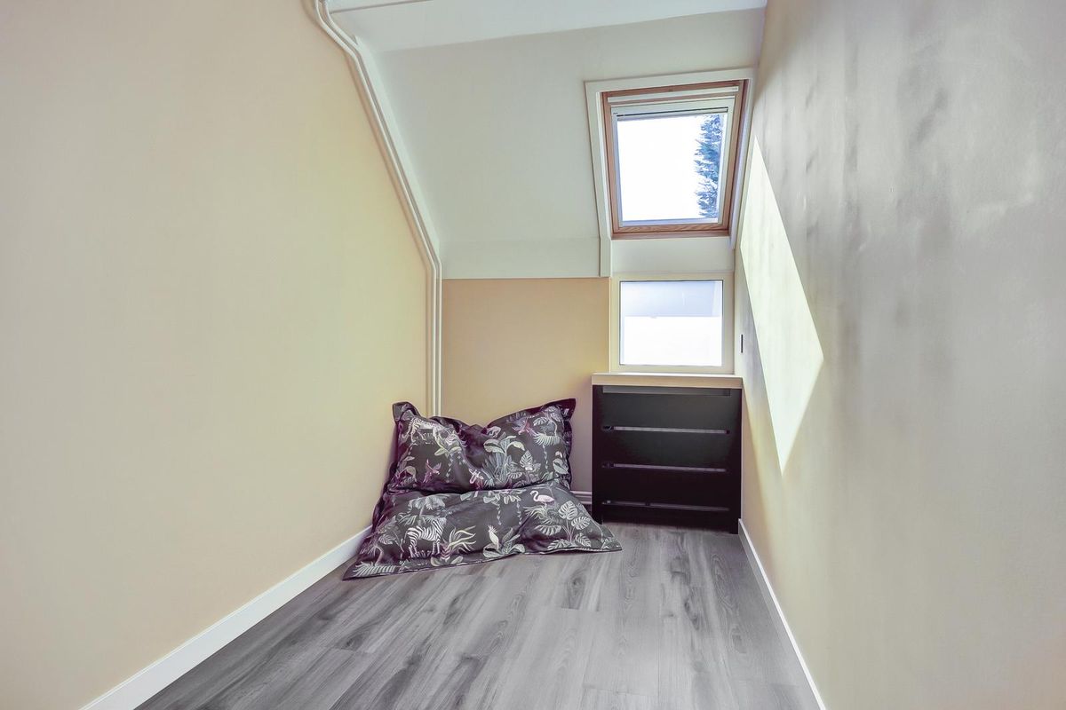 De tweede verdieping biedt nog een ruime vierde slaapkamer, voorzien van een nette afgetimmerde kastruimte. Daarnaast is er een aparte wasruimte en cv-combi ketel (2021), praktisch en netjes weggewerkt.