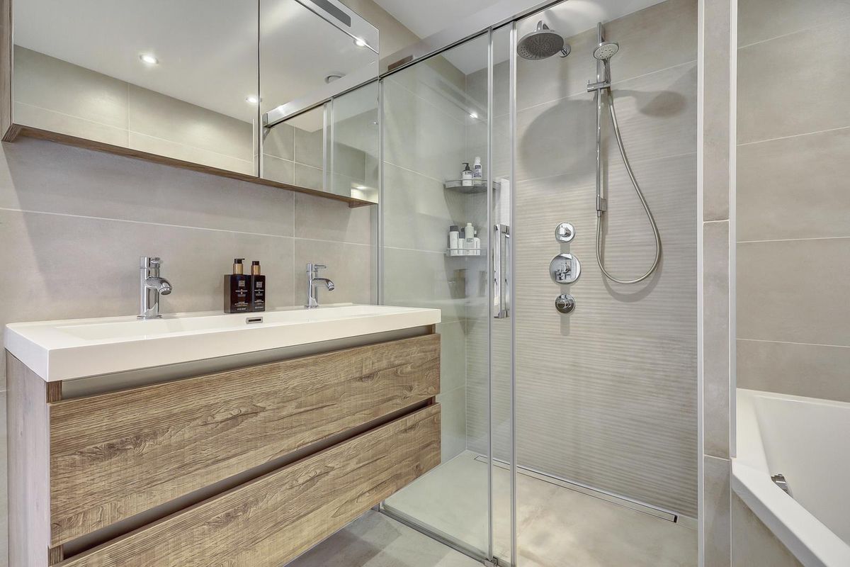 • Luxe badkamer (2019) met ligbad, grote douche, dubbel wastafelmeubel en zwevend toilet
