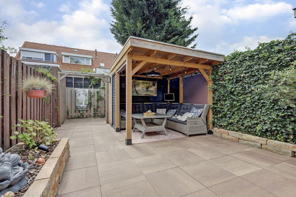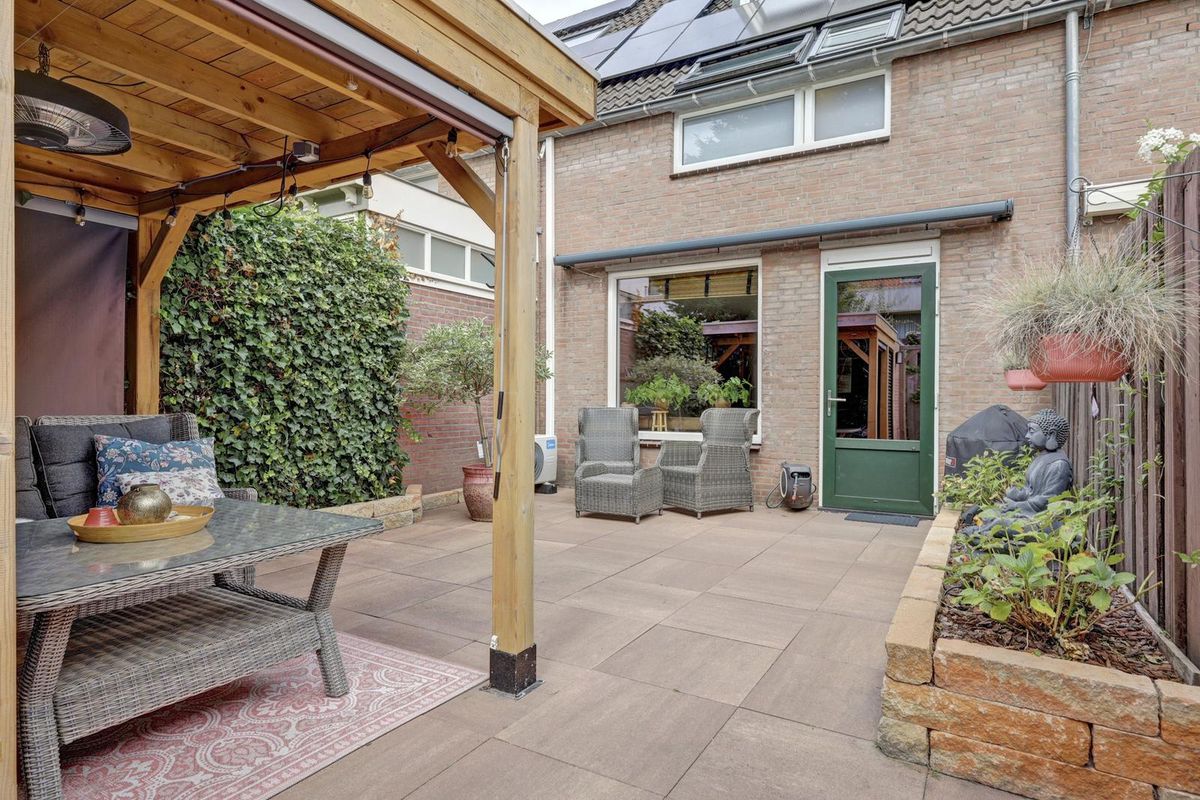 De achtertuin ligt op het Zuidzuidoosten, waardoor je veel zon hebt. Daarnaast tref je hier een sfeervolle veranda: dé plek voor lange zomeravonden en gezellige borrels. De stenen berging is een praktische ruimte voor fietsen en verdere opslag en er is een achteruitgang.
